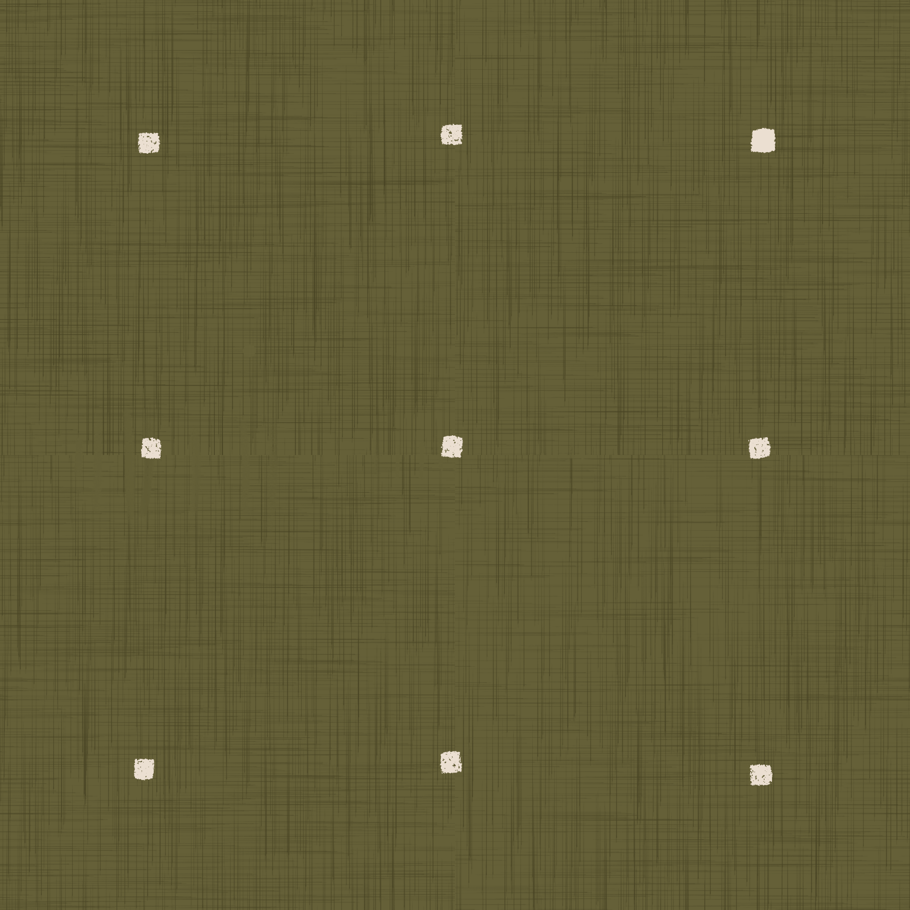 Bring natural charm to your home with this textured wallpaper for walls. The design features a soft olive green backdrop, crossed with subtle lines. Small, cream-colored squares add a touch of simple elegance. Ideal for a living room, bedroom, or hallway, this wallpaper creates a calm, inviting atmosphere. The muted tones and simple pattern make it a versatile complement to various interior styles, from rustic to modern minimalist.