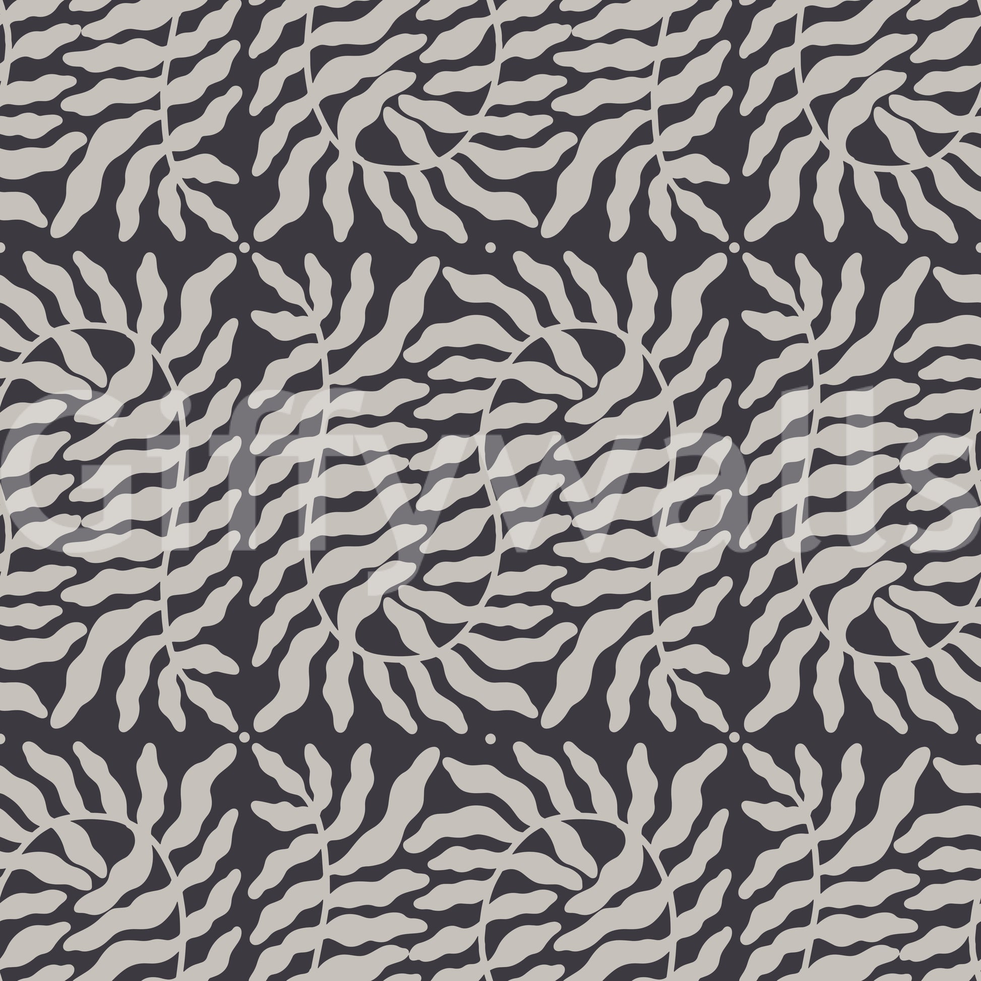Dette tapet viser en moderne og stilfuld overtagelse af organiske former. Designet indeholder gentagne stiliserede blade i en blød taupe, der er indstillet på en dybere kulbaggrund. Det enkle, men alligevel elegante design gør det alsidigt nok til en lang række rum, fra moderne stuer til rolige soveværelser. Den dæmpede farvepalet fremkalder en følelse af ro og ro, mens de organiske former tilføjer et strejf af naturlig skønhed. Denne subtile, men slående tapet er perfekt til enhver, der værdsætter undervurderet elegance og et strejf af moderne sofistikering.