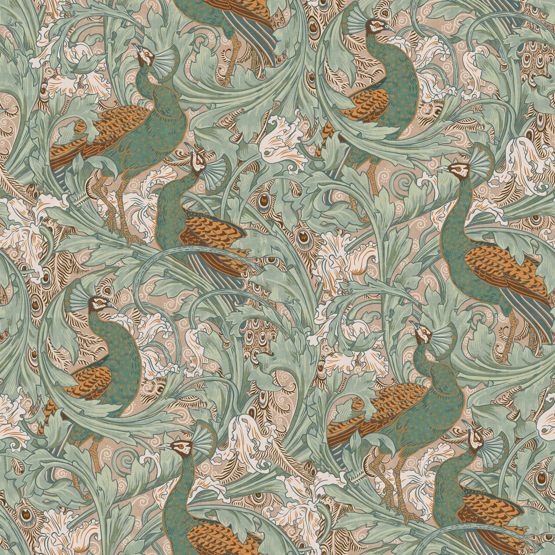 Påfuglhave af Walter Crane i grøn beige sennep tapet⁠