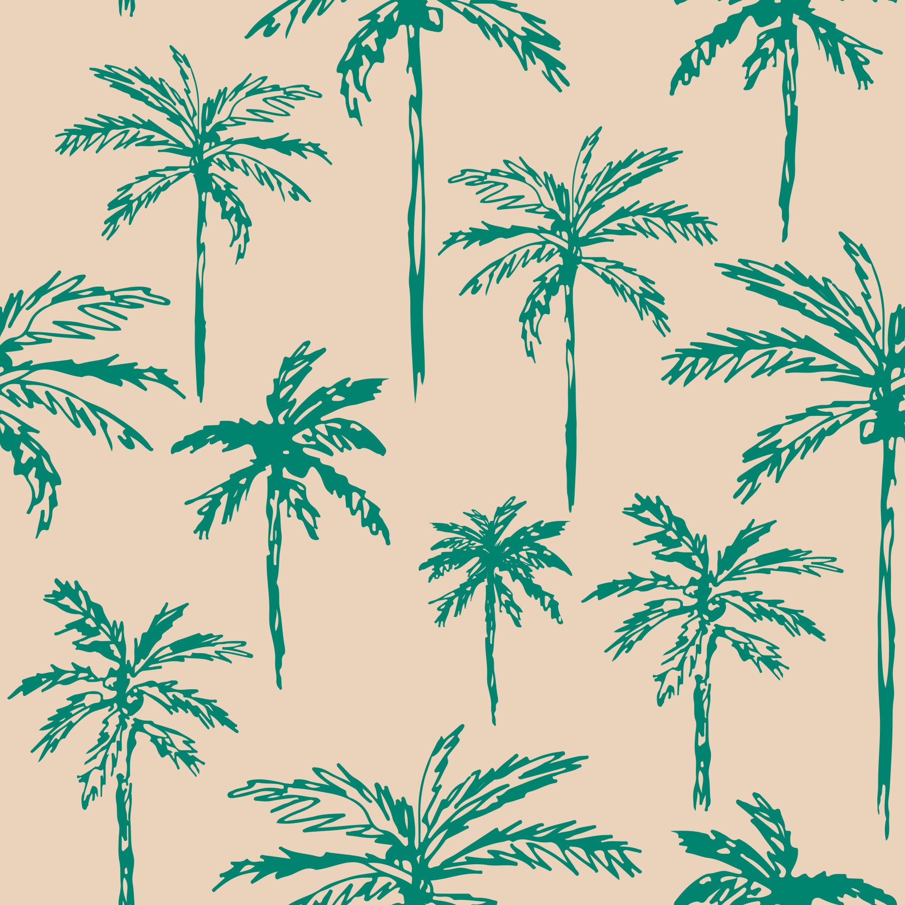 Transform your space with this breezy palm tree pattern. The sketch style offers a playful, hand-drawn aesthetic, and the contrast of teal palms against a neutral backdrop brings a tropical vibe without overwhelming. It creates a relaxed feel, ideal for living rooms, bedrooms, or even a home office. This wallpaper for walls easily enhances interiors, adding character to a beach house or a touch of summer to any room. Let your walls speak of island getaways and carefree days.