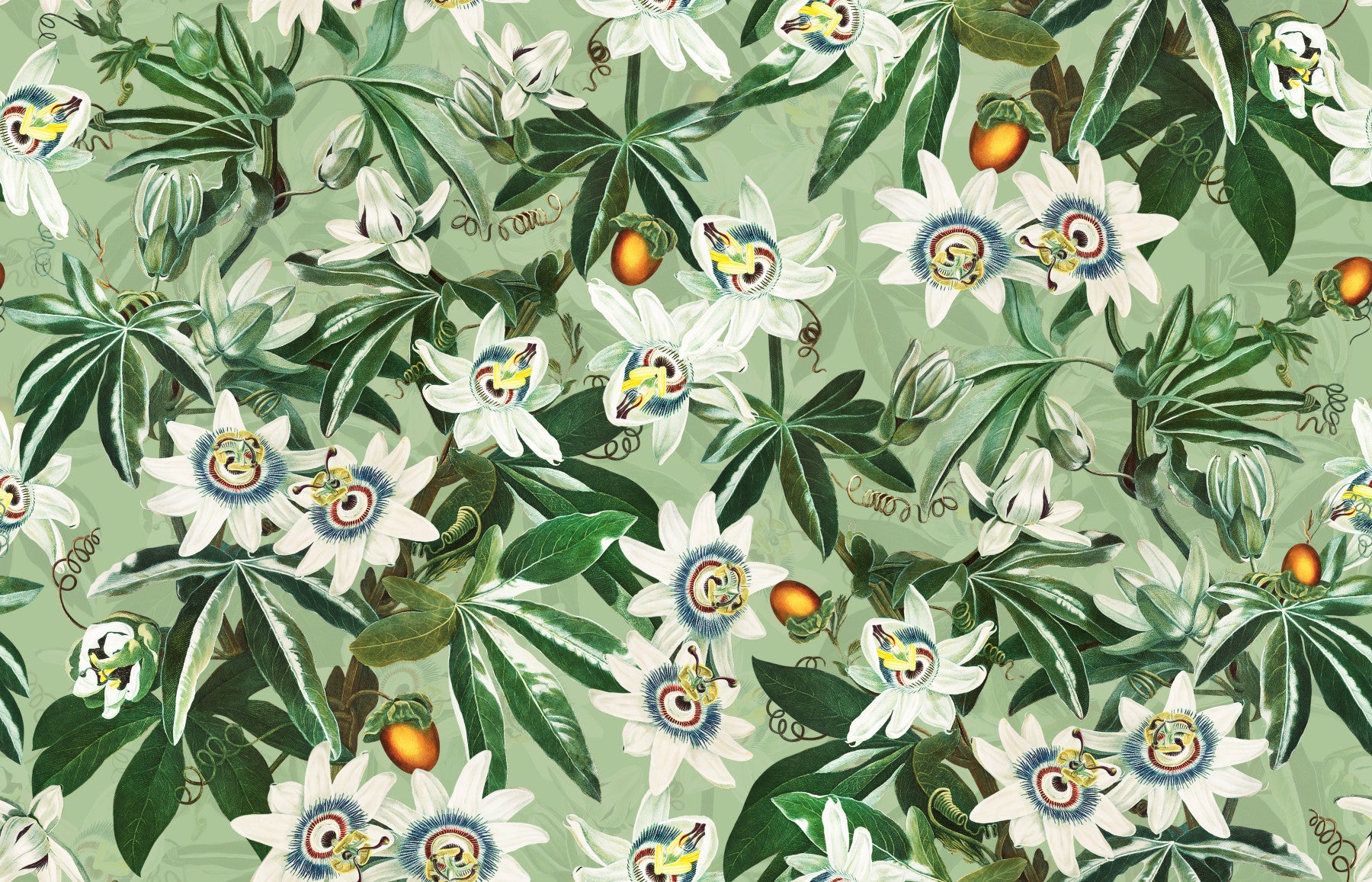 Passionflower Paradise wallpaper mural with detailed vines and exotic blooms.