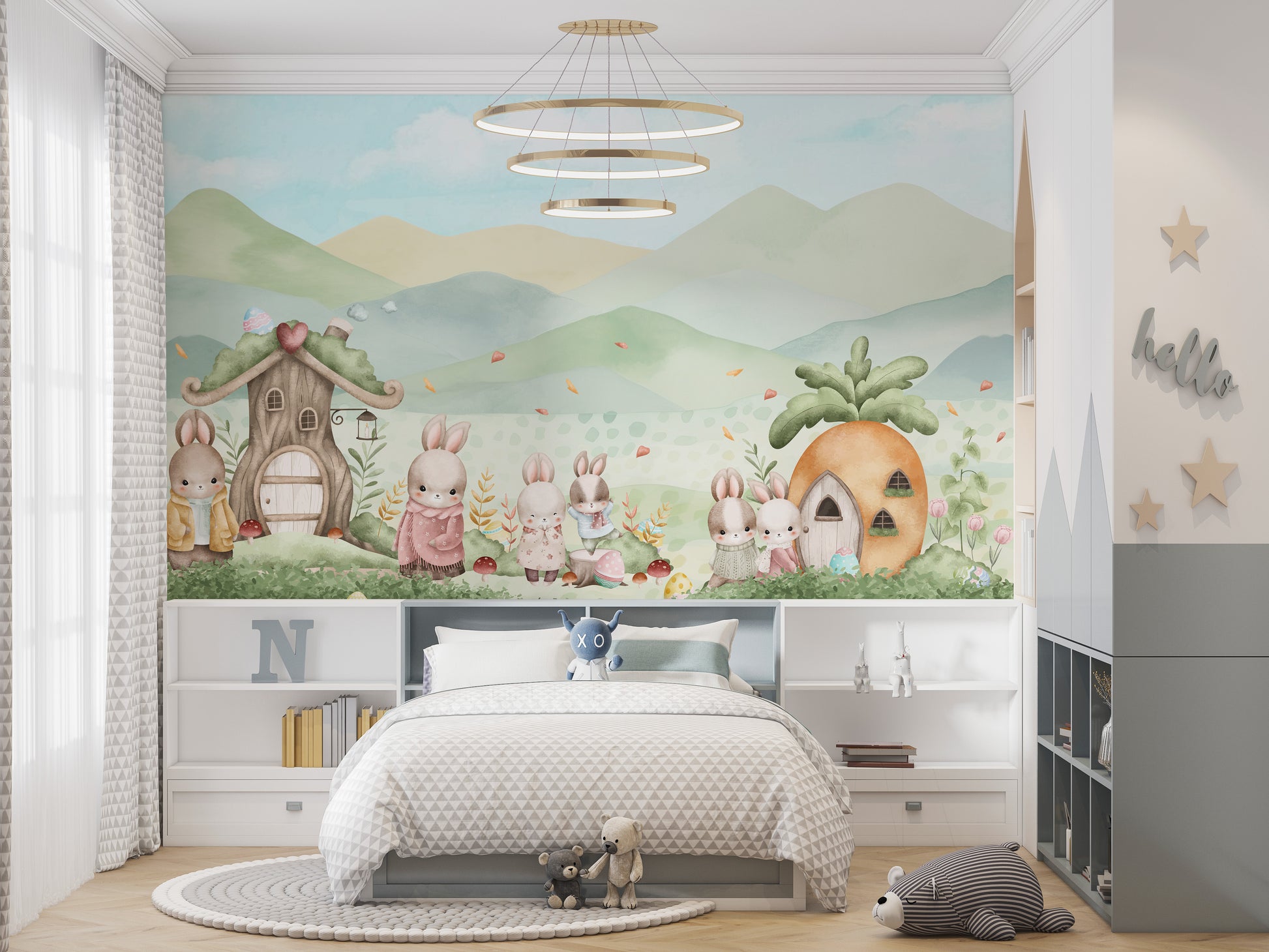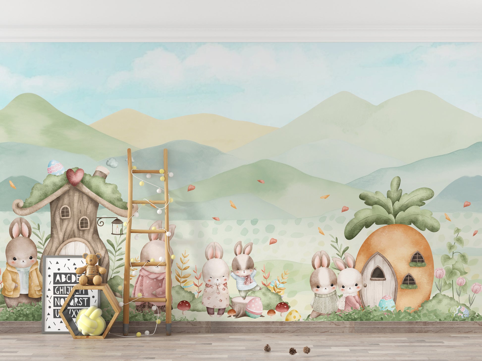 Leder du efter et sødt påsketapet til dit børneværelse eller køkken? Dette pastelfarvede påsketapet med kaniner er lige, hvad du har brug for. Med bløde pastelfarver, legesyge kaniner og påskeæg er det perfekt til at tilføje en sjov forårsstemning til små rum. Det er et selvklæbende tapet, der er nemt at påføre og sikkert for lejere. Uanset om du indretter et børneværelse eller opdaterer dine vægge til påske, gør dette aftagelige påsketapet det nemt. Hvis du ønsker kanintapet, der føles friskt og festligt, er dette påsketema-tapet et godt valg til dit hjem i foråret.