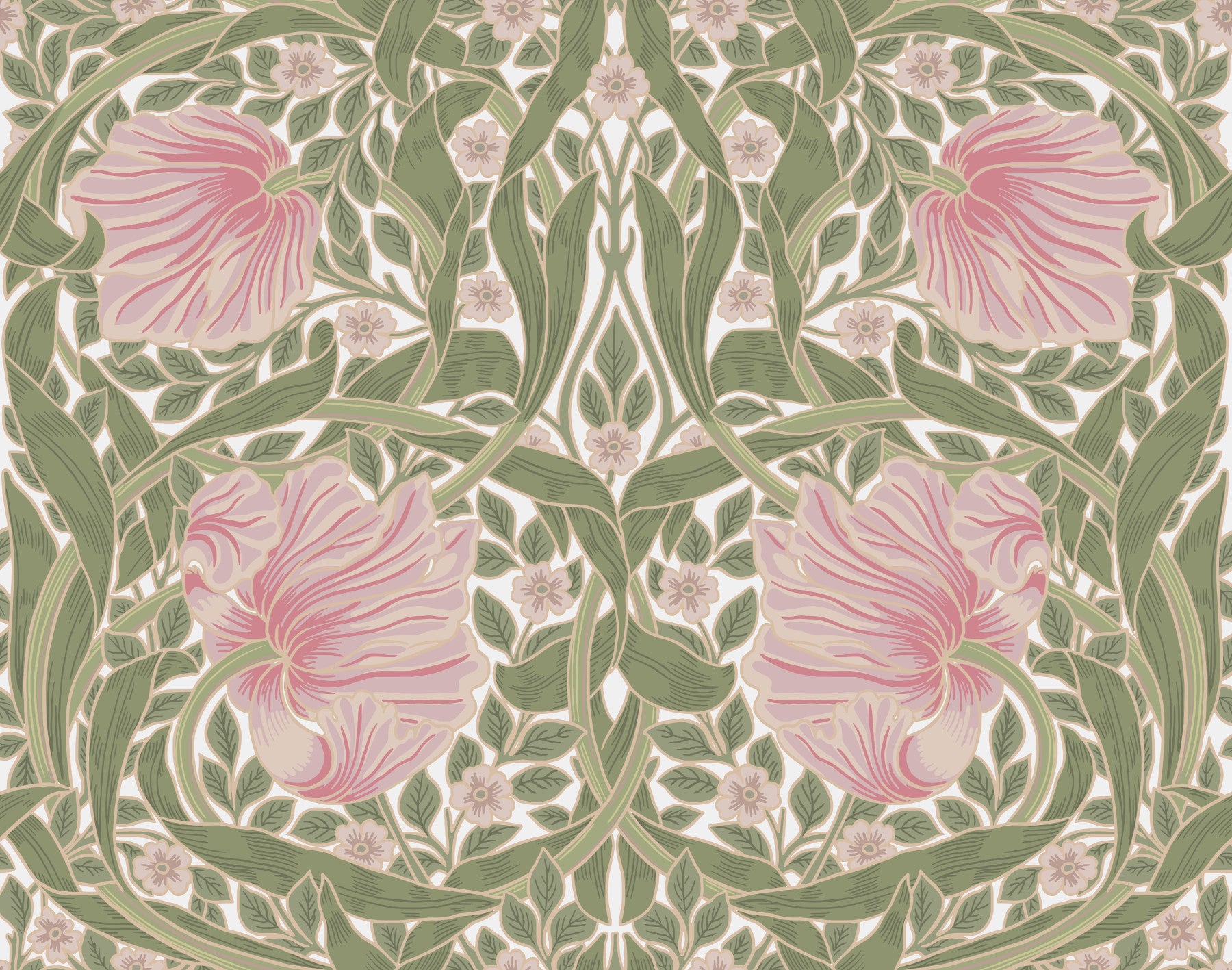 Forkæl dig med den tidløse elegance af "Pimpernel af William Morris 21." Dette tapet viser et fængslende tapestry af rødme lyserød pimpernelblomster sammenflettet med frodig, frodig løv. Det komplicerede, Art Nouveau-inspirerede design indeholder delikat detaljer og et symmetrisk arrangement, hvilket skaber en følelse af raffineret ro. Bløde greener og dæmpede pink blander problemfrit mod en cremet off-white baggrund, der tilbyder en sofistikeret og beroligende atmosfære. Tapetet fremkalder en følelse af klassisk skønhed, perfekt til at tilføje et strejf af vintage charme til ethvert rum. Dens komplicerede blomstermønstre er både visuelt slående og beroligende, hvilket gør det til et perfekt valg til soveværelser, stuer eller ethvert rum, der har brug for et strejf af raffineret elegance.