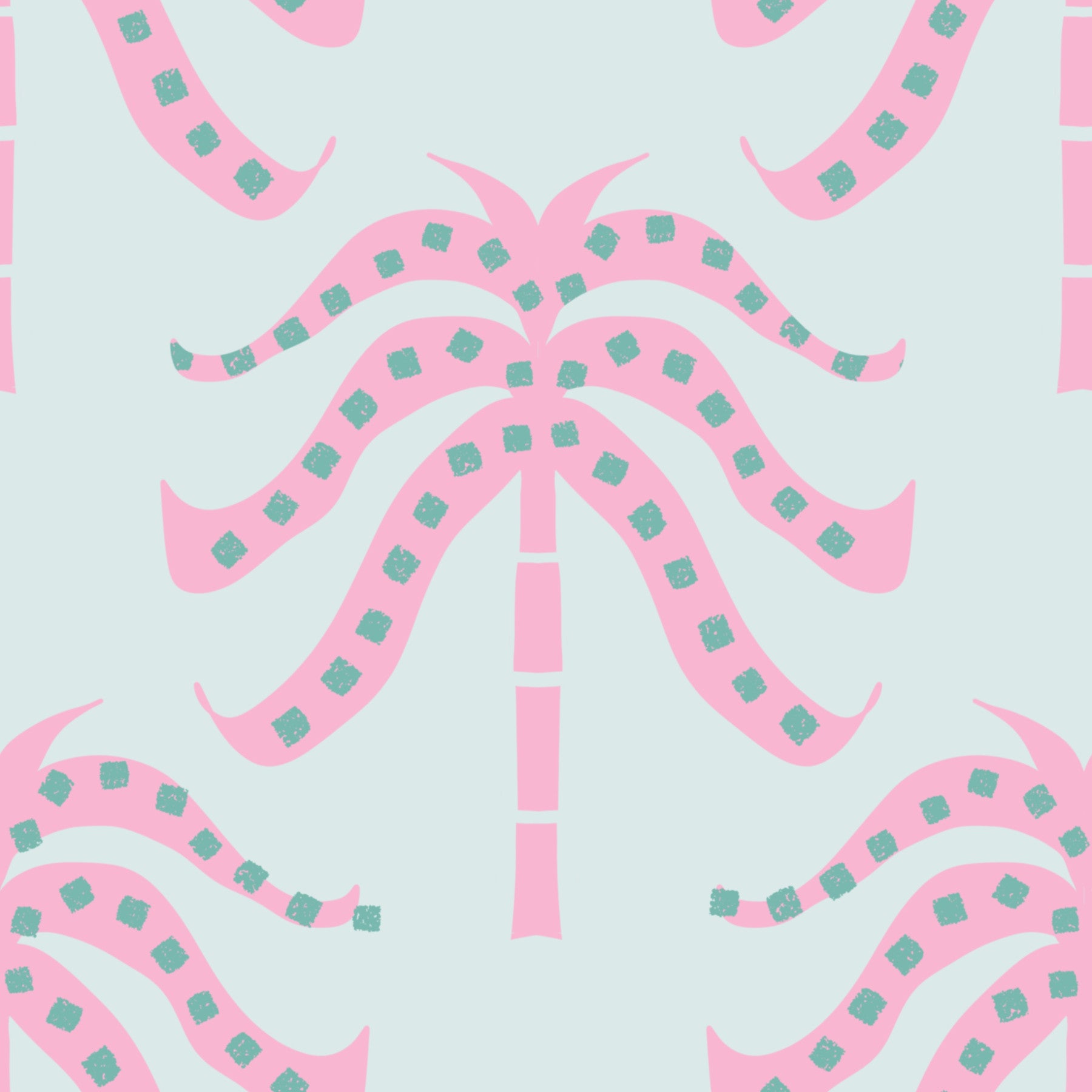 Transform din plads med dette finurlige palmetræ tapet. Bløde lyserøde palmer, prikket med teal, skiller sig ud mod en let myntbaggrund. Dette tapet til vægge tilføjer øjeblikkeligt et legende element. Ideel til børnenes værelser, planteskoler eller badeværelser bringer mønsteret en let charme for interiør. Pastelfarver og enkle design komplementerer en række indretningsstilarter, hvilket skaber en lys og glad atmosfære.