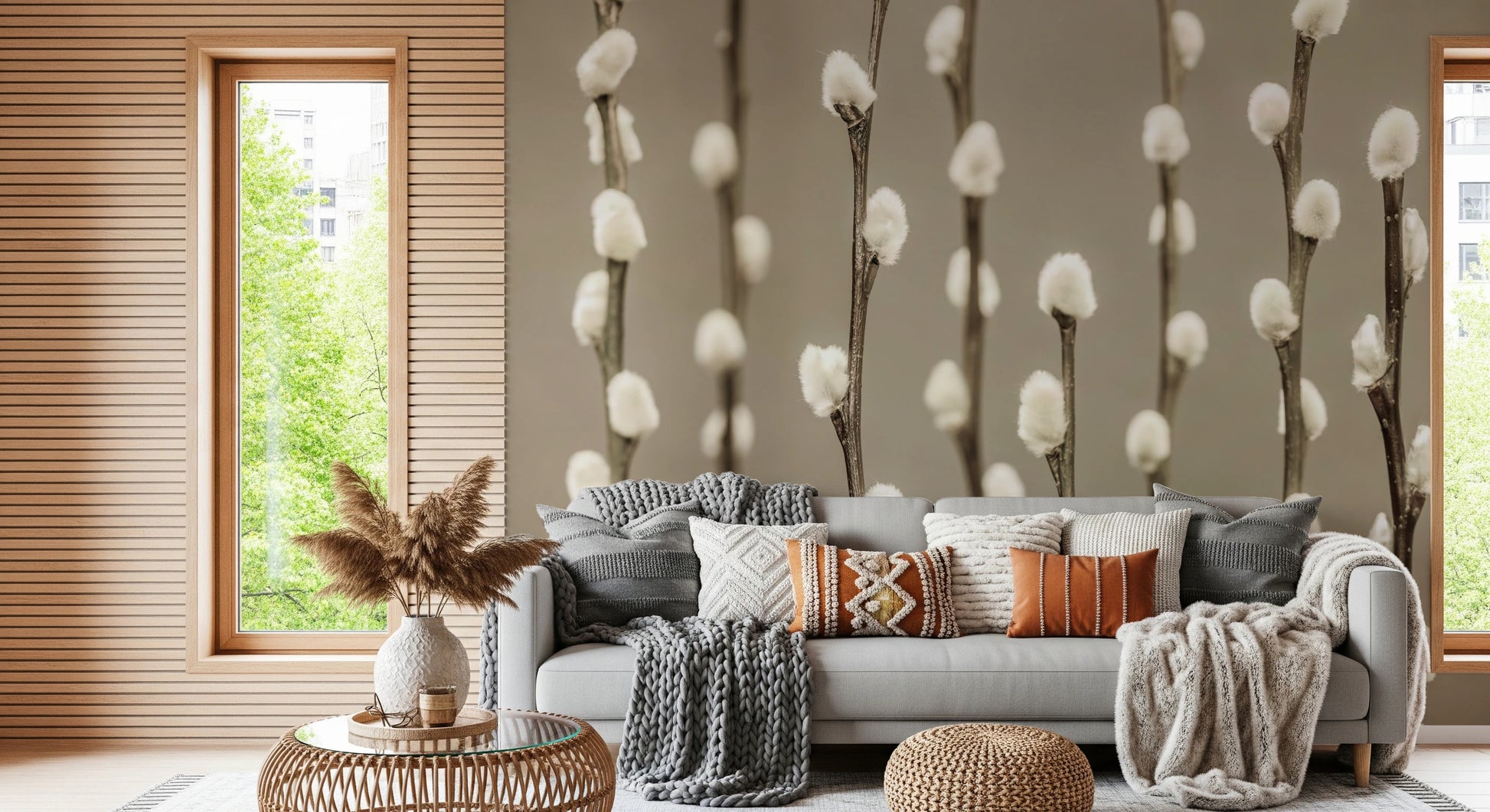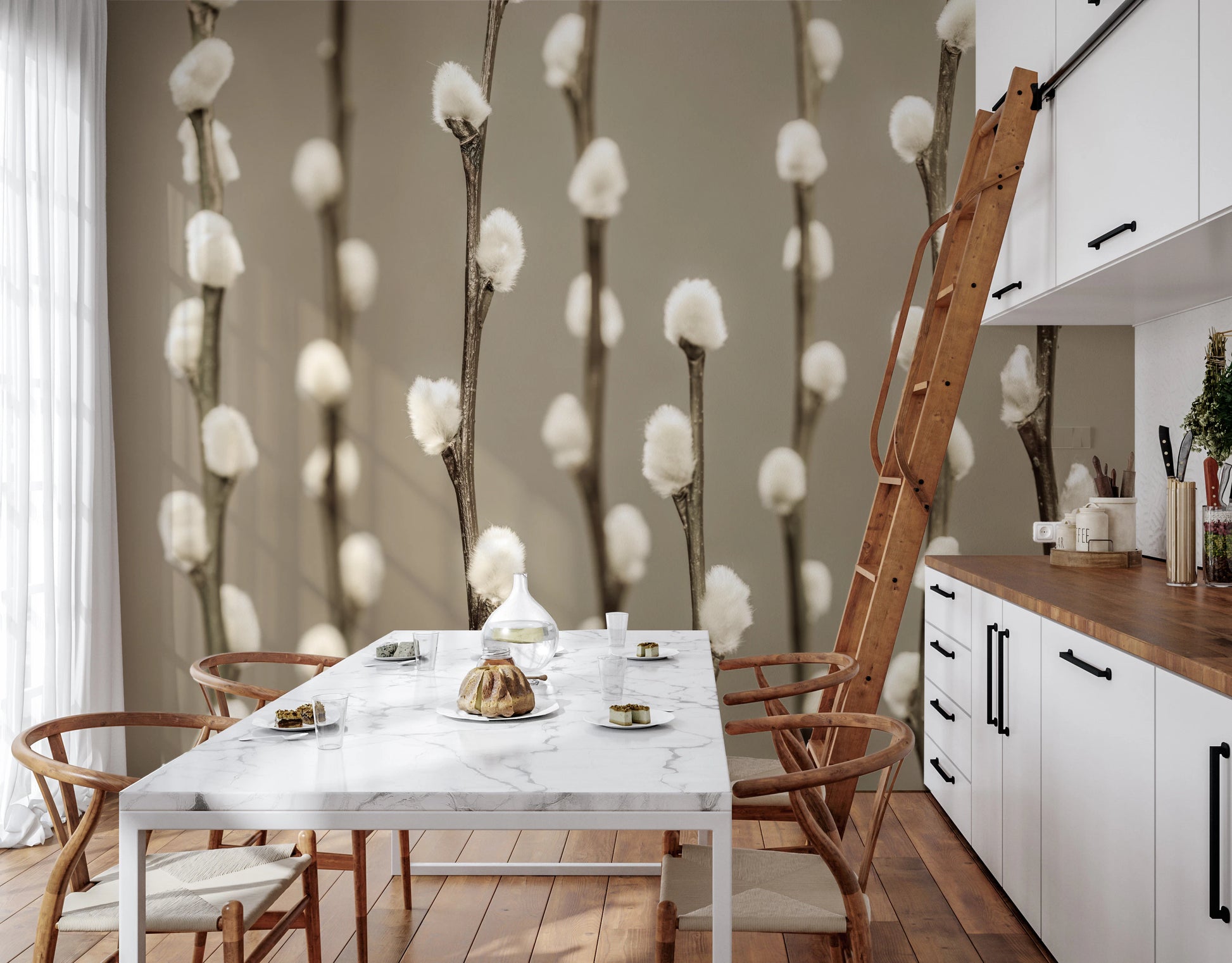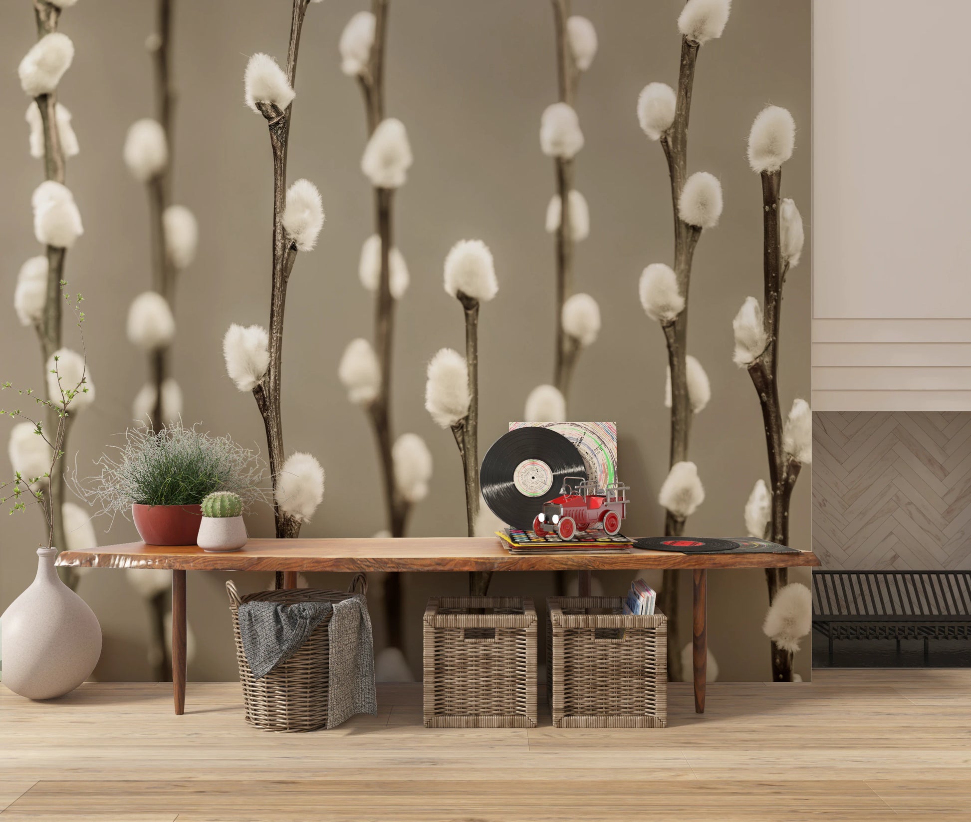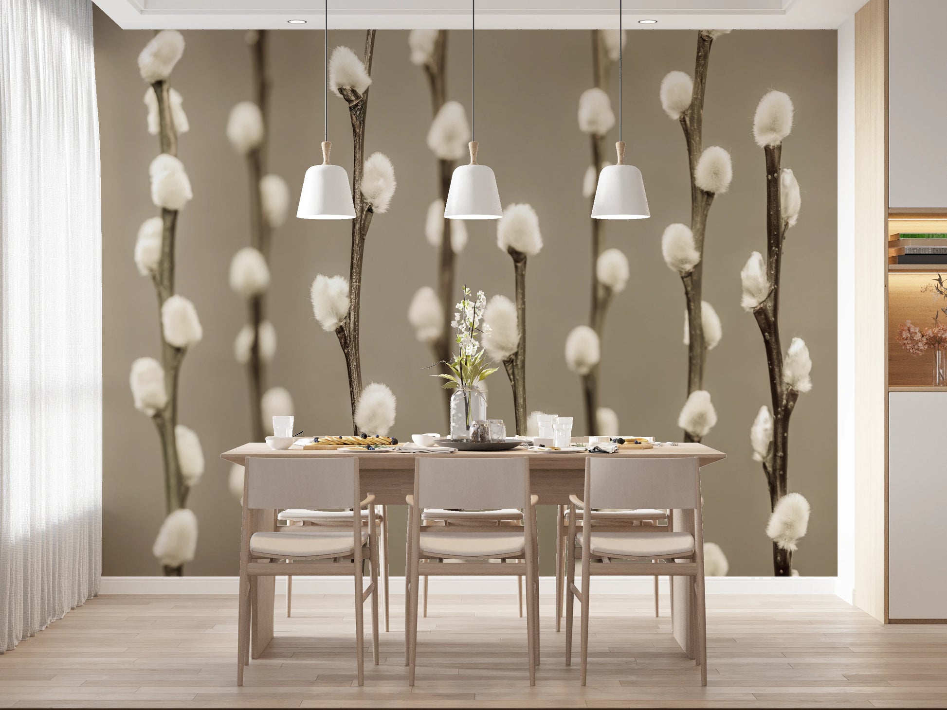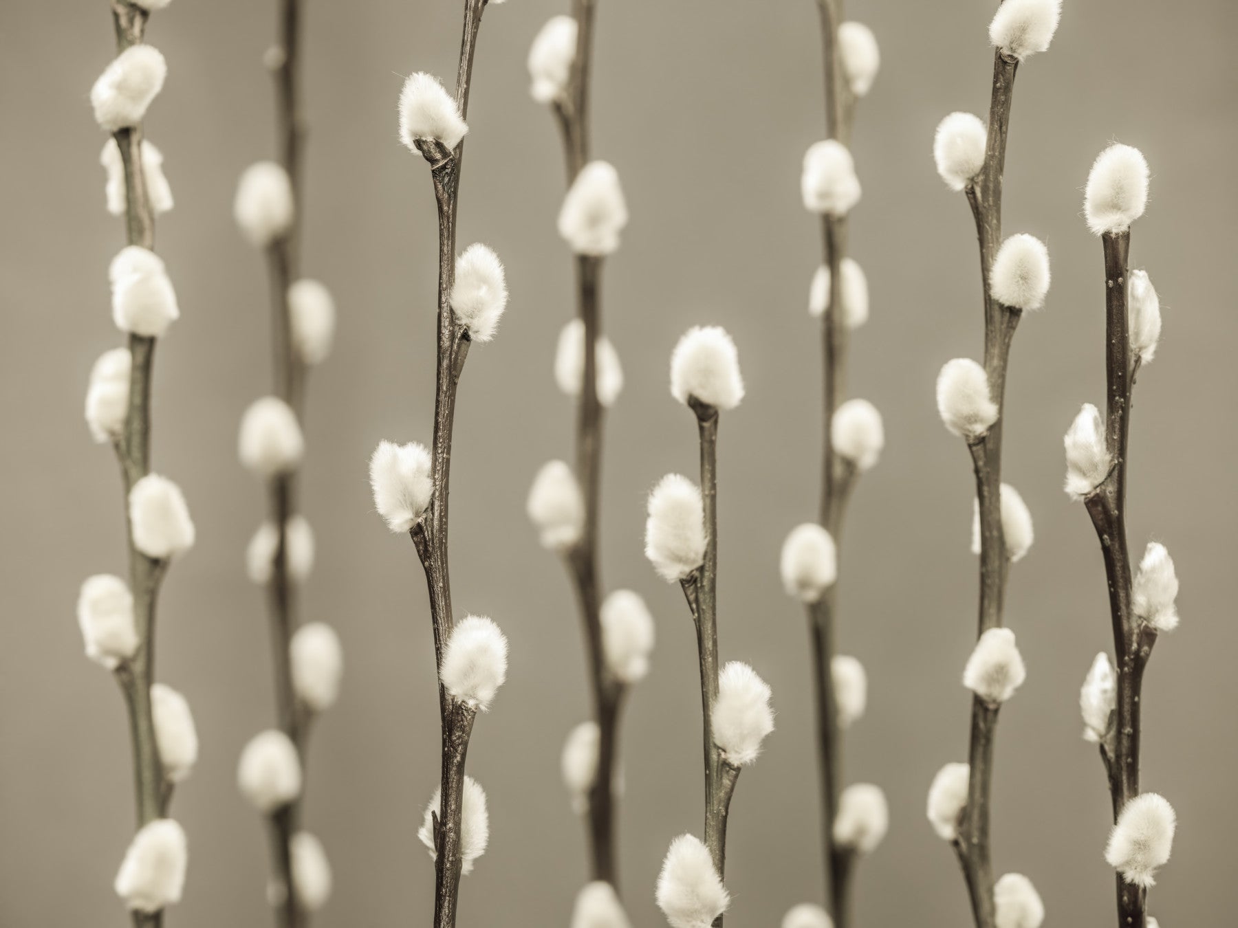 Kviste af piletræ. Omfavn den subtile skønhed i det tidlige forår med vores vægdekoration 'Pussy Willow'. Dette design indfanger den delikate elegance af piletræsgrene, deres fløjlsbløde rakler gengivet i udsøgte detaljer. De dæmpede, neutrale toner skaber en beroligende og underspillet atmosfære, perfekt til at tilføje et strejf af naturlig ro til ethvert rum. Lad de bløde teksturer og blide former fremkalde en følelse af ro og fornyelse og forvandle dit rum til et roligt fristed. Dette møbel tilbyder et sofistikeret, naturinspireret præg, perfekt til at skabe en fredelig og indbydende atmosfære i dit hjem. Bring den stille charme fra naturen indenfor med dette tidløse og elegante design.