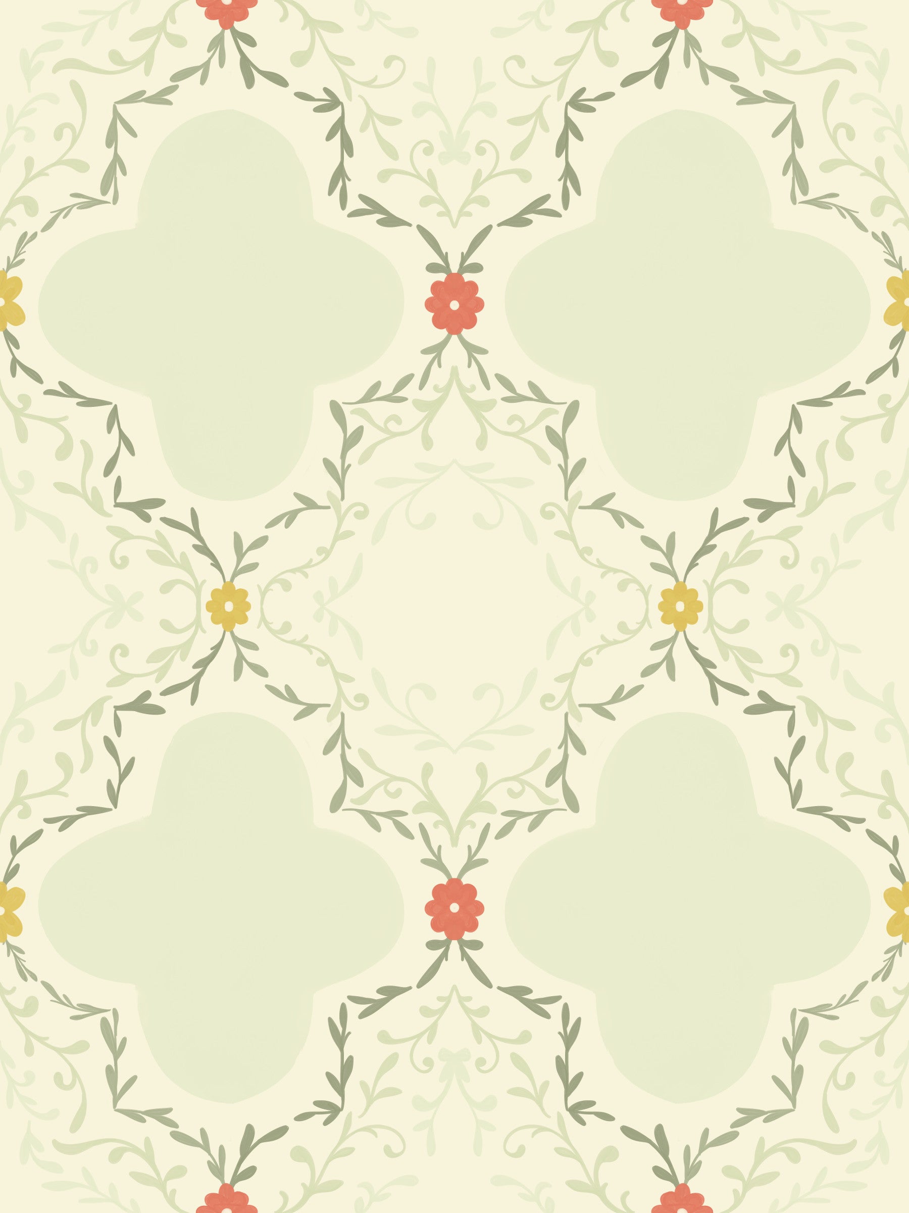 Forvandl dine vægge med den delikate charme fra dette tapet med vinrankemønster. Designet har en firbladet base flettet sammen med stiliserede vinranker og små, farverige blomsteraccenter, gengivet i dæmpede nuancer af grøn, blød koral og cremet beige. Dette tapet bringer et strejf af underspillet elegance og vintage-appel til dit hjem. Ideelt til soveværelser, stuer eller gange, introducerer det en beroligende visuel tekstur. De bløde nuancer forbedrer den overordnede atmosfære og får rummene til at føles både større og mere indbydende.