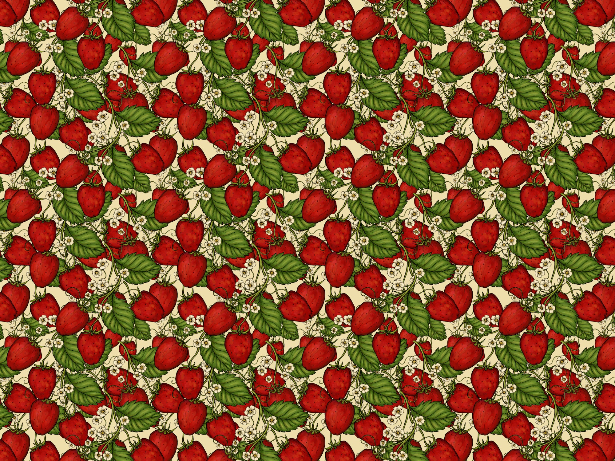Charming red strawberry forest wallpaper for cozy and inviting spaces.