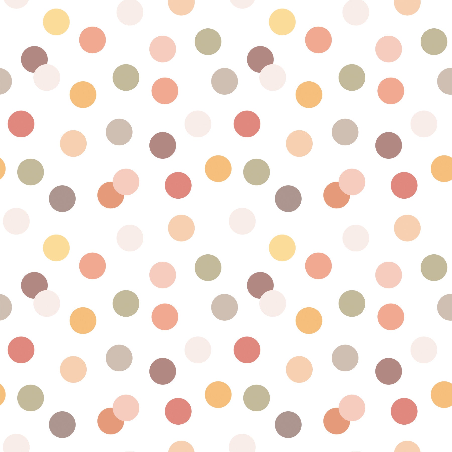 Gå tilbage i tiden med dette muntre prikmønster. Dette tapet til vægge har en problemfri række farverige prikker på en hvid baggrund. Jordagtige og bløde nuancer skaber en sjov og vintage stemning. Dette design vil supplere ethvert rum, inklusive et børneværelse, børnehave eller gangen. Det tilføjer interiør personlighed og lysstyrke, hvilket får ethvert rum til at føle sig frisk og glad.