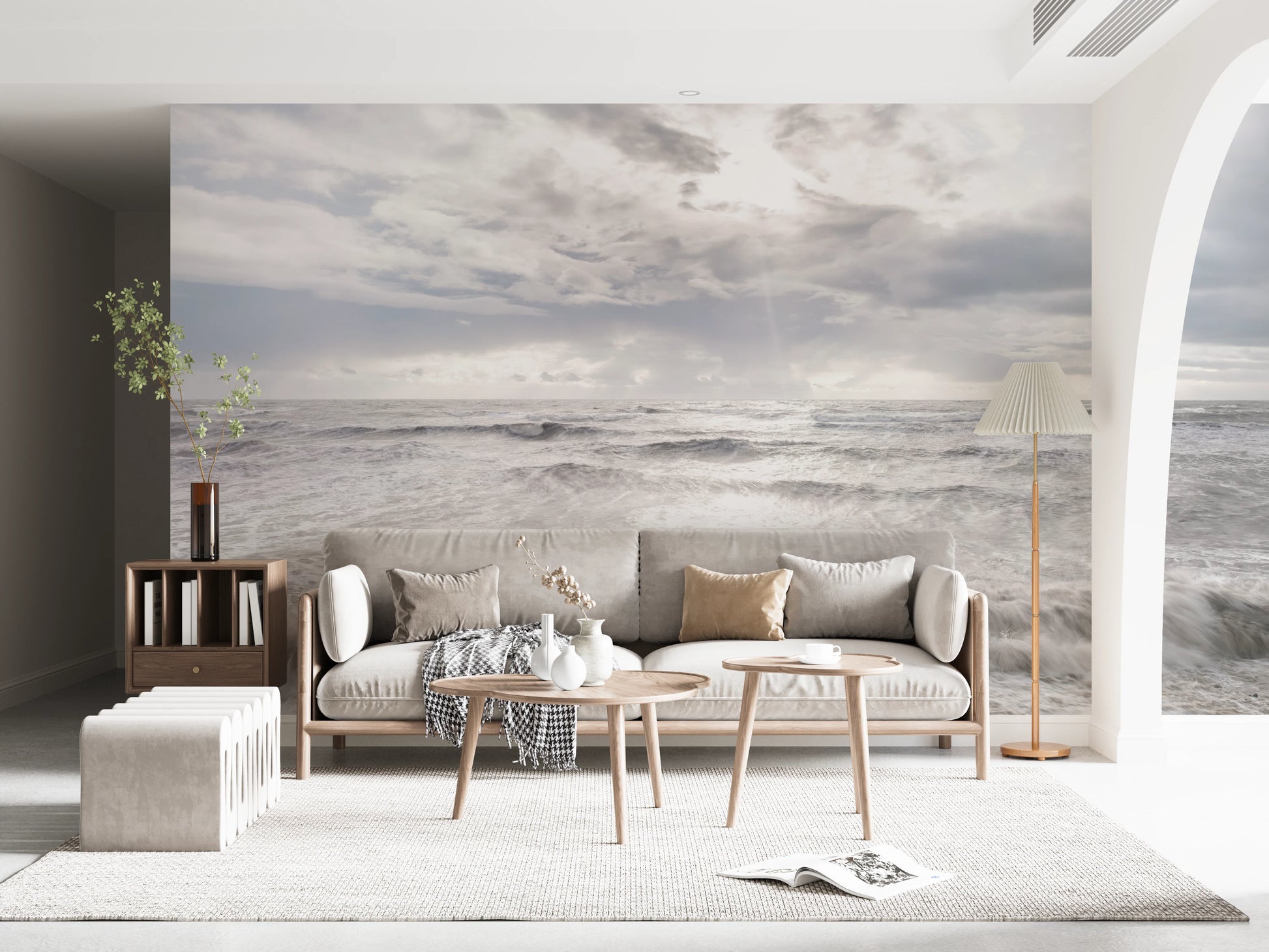 Oprørt og stormfuldt hav i skumringen, Charmouth, Dorset, Storbritannien. Fordyb dig i havets rå kraft med denne stemningsfulde vægdekoration. "Rough Stormy Sea" indfanger kystens utæmmede ånd og skildrer et sceneri med brusende bølger og turbulente himmelstrøg. Billedet formidler en følelse af drama og energi, når bølgerne kværner mod kysten med imponerende kraft og skaber et fascinerende samspil mellem lys og skygge. De dæmpede, neutrale toner forstærker følelsen af et vildt, naturligt miljø. Ideelt til at tilføje et strejf af kystcharme og en følelse af forfriskende kraft til ethvert rum, fungerer dette værk som et fængslende fokuspunkt, der bringer havets dynamiske skønhed til dine vægge. Dette kunstværk fremkalder en følelse af ro og ærefrygt og indfanger naturens magt i sin mest ærefrygtindgydende form.