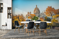 Adorn your home with this captivating wallpaper for walls. This vista showcases the Sacré-Cœur Basilica bathed in a warm, inviting light. The juxtaposition of natural and man-made beauty radiates harmony and grace, complementing modern, classic, and even industrial-styled interiors. The building's grandeur, coupled with the surrounding trees, creates a serene atmosphere. It is ideal for a living room, entryway, or study, adding a touch of Parisian charm.