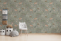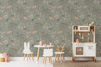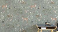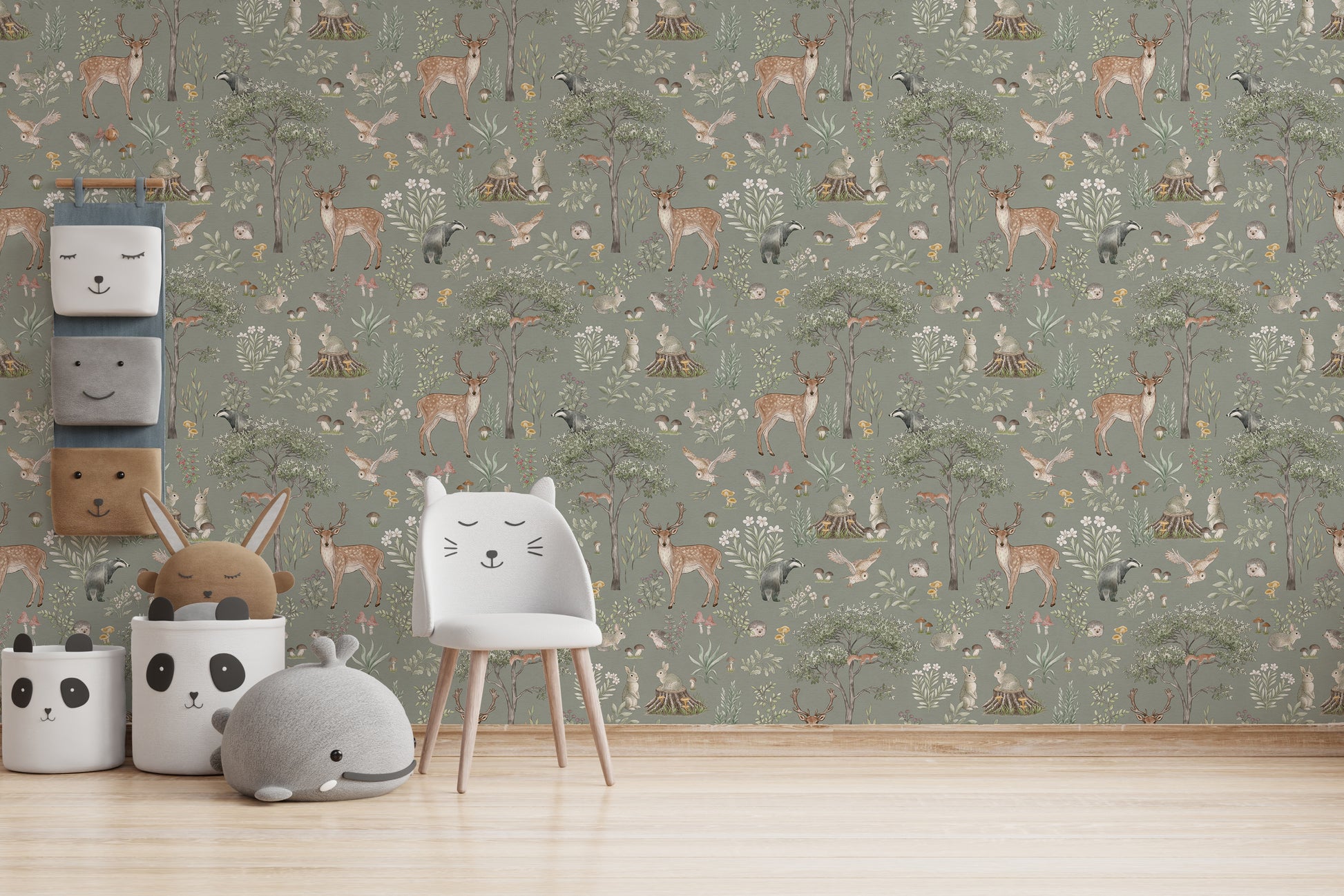 Indhyll dit rum i naturens favn med dette salviegrønne tapet med dyreliv. Med fine håndtegnede hjorte, skovdyr og frodige grønne områder indfanger dette design skønheden i en fredelig skov. Den bløde farve grønt tapet Baggrunden giver en frisk, organisk følelse, hvilket gør den perfekt til soveværelser, børneværelser eller naturinspirerede interiører. De diskrete jordfarver blandes ubesværet med trædetaljer og neutral indretning og skaber en hyggelig og indbydende atmosfære. Uanset om du elsker rustik charme eller en moderne botanisk æstetik, tilbyder dette tapet en tidløs måde at bringe udelivet indenfor.