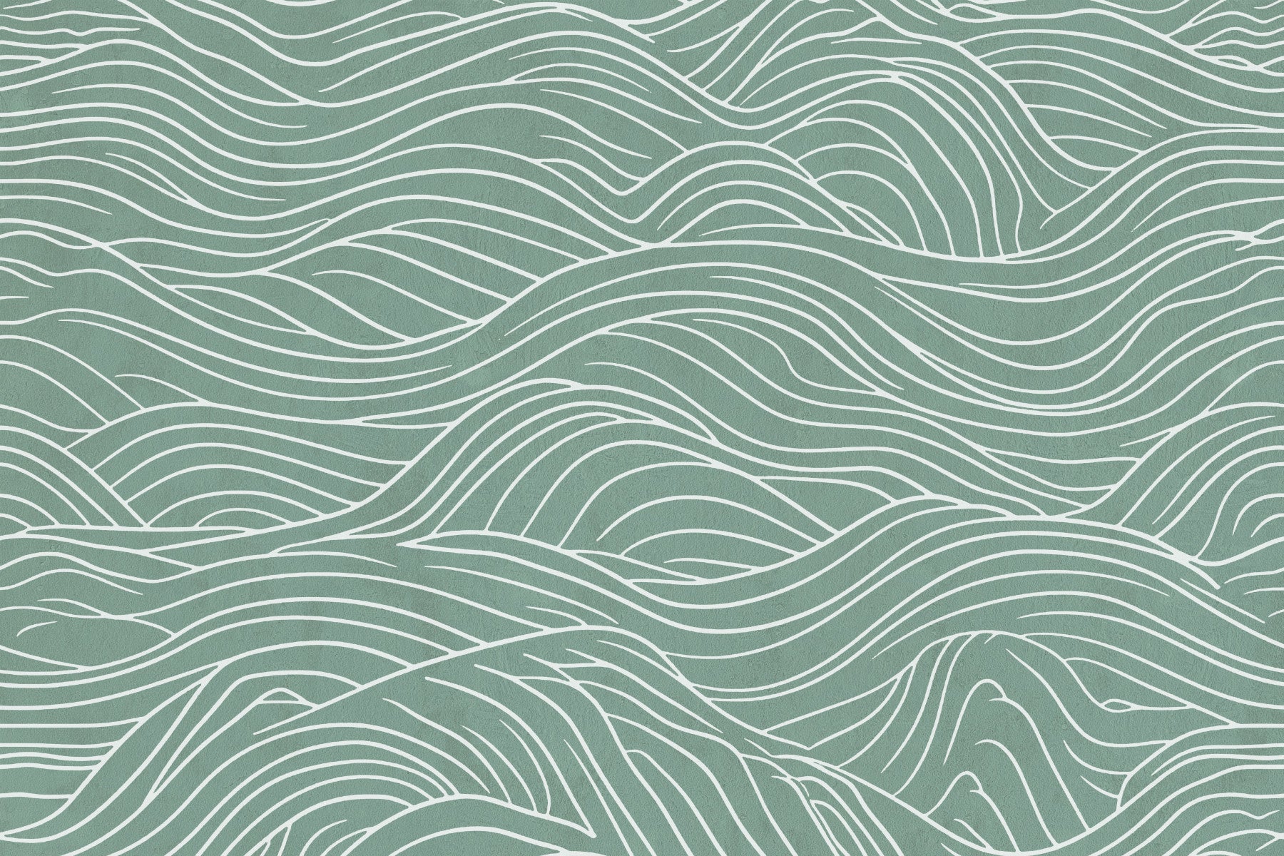Introduce tranquility with this flowing design. Gentle white lines undulate across a sage green backdrop, creating a calming effect. This wallpaper for walls brings an organic touch to any room. Perfect for bedrooms, bathrooms, or living spaces, this design enhances a peaceful atmosphere. The fluid pattern complements minimalist and modern interiors alike. Embrace a serene living space with this elegant and soothing wallpaper.