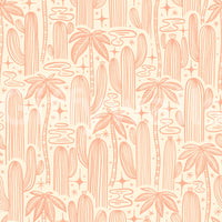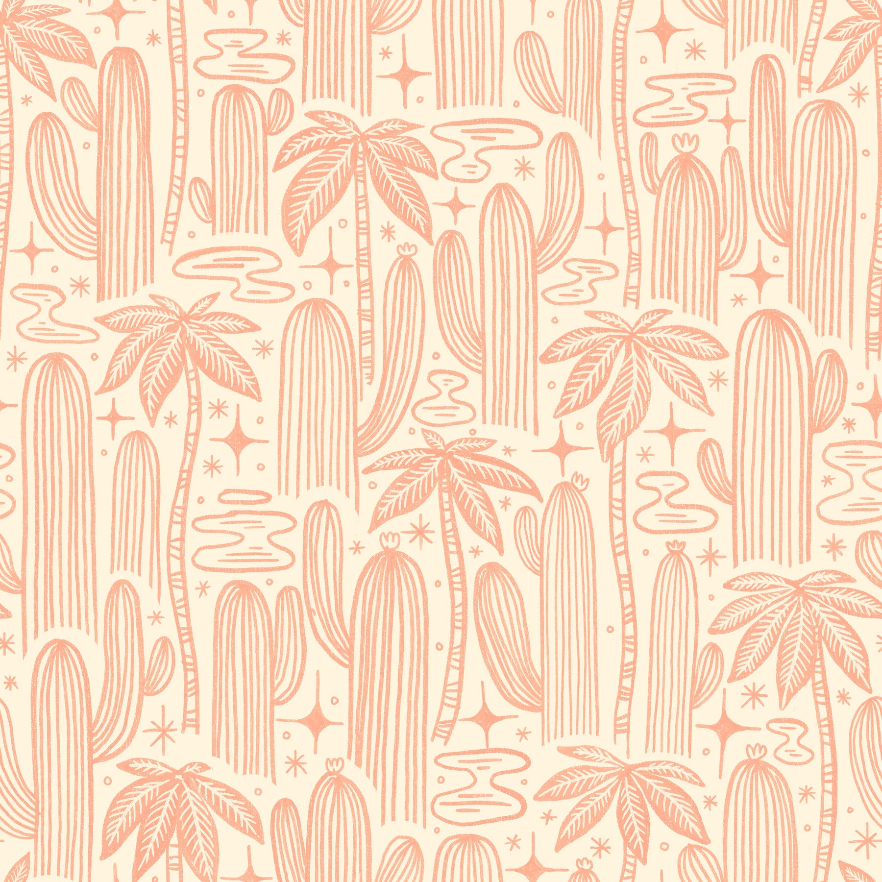 Badet i en off-white glød, har dette tapetdesign et fængslende arrangement af stiliserede Saguaro-kaktus og palmer. Delikat, fersken-tonet linjekunst skaber en rolig og minimalistisk æstetik. Spredte stjerner og abstrakte vandbassiner tilføjer et strejf af himmelsk magi og ørken oase charme. Den håndtegnede fornemmelse giver en unik struktur og varme, hvilket gør den perfekt til at tilføje et strejf af sydvestlig elegance til enhver digital enhed. Dette tapet fremkalder et beroligende, drømmeagtige ørkenlandskab under en stjernet himmel, ideel til dem, der søger en rolig og sofistikeret digital baggrund.
