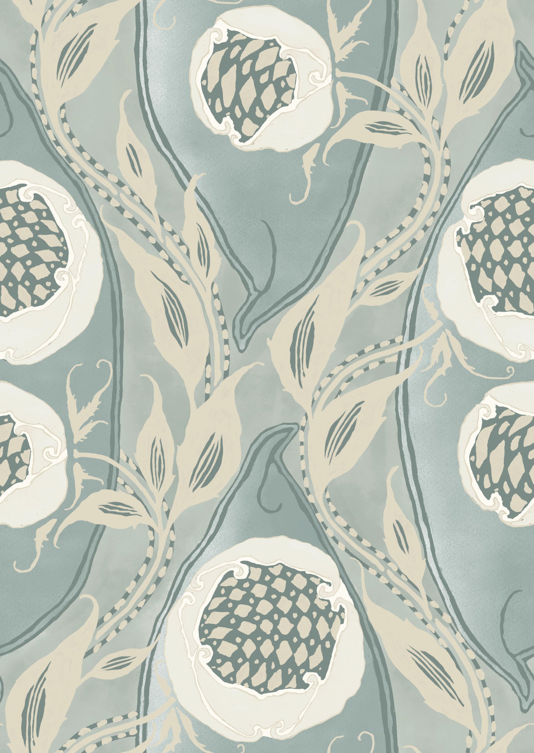 Samarkande nr. 4 Pale Aqua Cream teal grå tapet⁠