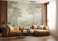 Forvandl din bolig med den fredfyldte skønhed i en skandinavisk skov, fanget i en fantastisk støvet grøn palet. Denne vægbeklædning fremkalder den rolige atmosfære i et nordisk skovområde, hvor slanke træer rejser sig midt i et blødt, tåget lys. De dæmpede toner skaber en beroligende og sofistikeret atmosfære, perfekt til at skabe et fristed i dit hjem. Delikate blomster- og bladdetaljer tilføjer et strejf af naturlig elegance og forstærker den overordnede følelse af fred og ro. Det subtile samspil mellem lys og skygge bringer dybde og dimension til dine vægge og skaber en fængslende visuel oplevelse. Fordyb dig i naturens stille skønhed, og lad dette elegante design bringe et strejf af skandinavisk charme til din indretning.