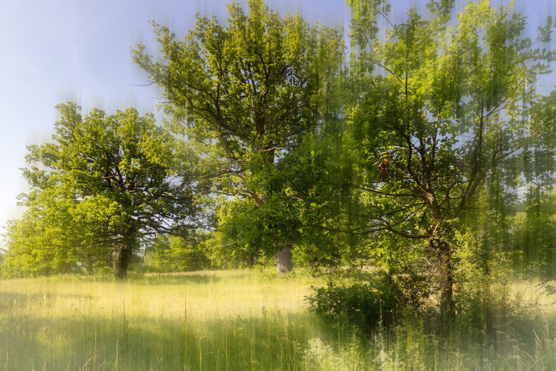 Dette fantastiske landskabsfotografi præsenterer en rolig scene med frodige træer badet i blødt, naturligt lys. De pulserende greener og blide strukturer fremkalder en følelse af fred, hvilket gør det til en perfekt tilføjelse til ethvert rum, der søger et strejf af naturen. Ideel til stuer, kontorer eller meditationsrum inviterer det et øjeblik af ro ind i dit daglige liv. Forbedre dit miljø med denne smukke skildring af naturen.