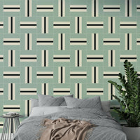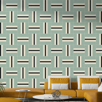 Dette tapetdesign har en beroligende palet af salvie grøn, off-white og sort, arrangeret i et enkelt, men alligevel elegant stribet mønster. Det subtile samspil mellem farver og de rene linjer skaber en følelse af ro og sofistikering, hvilket gør det perfekt til ethvert rum i dit hjem, der har brug for et strejf af undervurderet stil. Det gentagne mønster sikrer et sammenhængende og visuelt tiltalende look. Den minimalistiske æstetik egner sig godt til både moderne og traditionelt interiør og tilbyder et alsidigt baggrund for din personlige stil at skinne. Det er et perfekt valg for dem, der værdsætter rene linjer og en fredfyldt atmosfære.