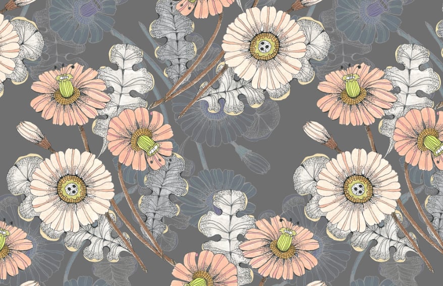 Pastel floral sketch wallpaper with vintage vibes