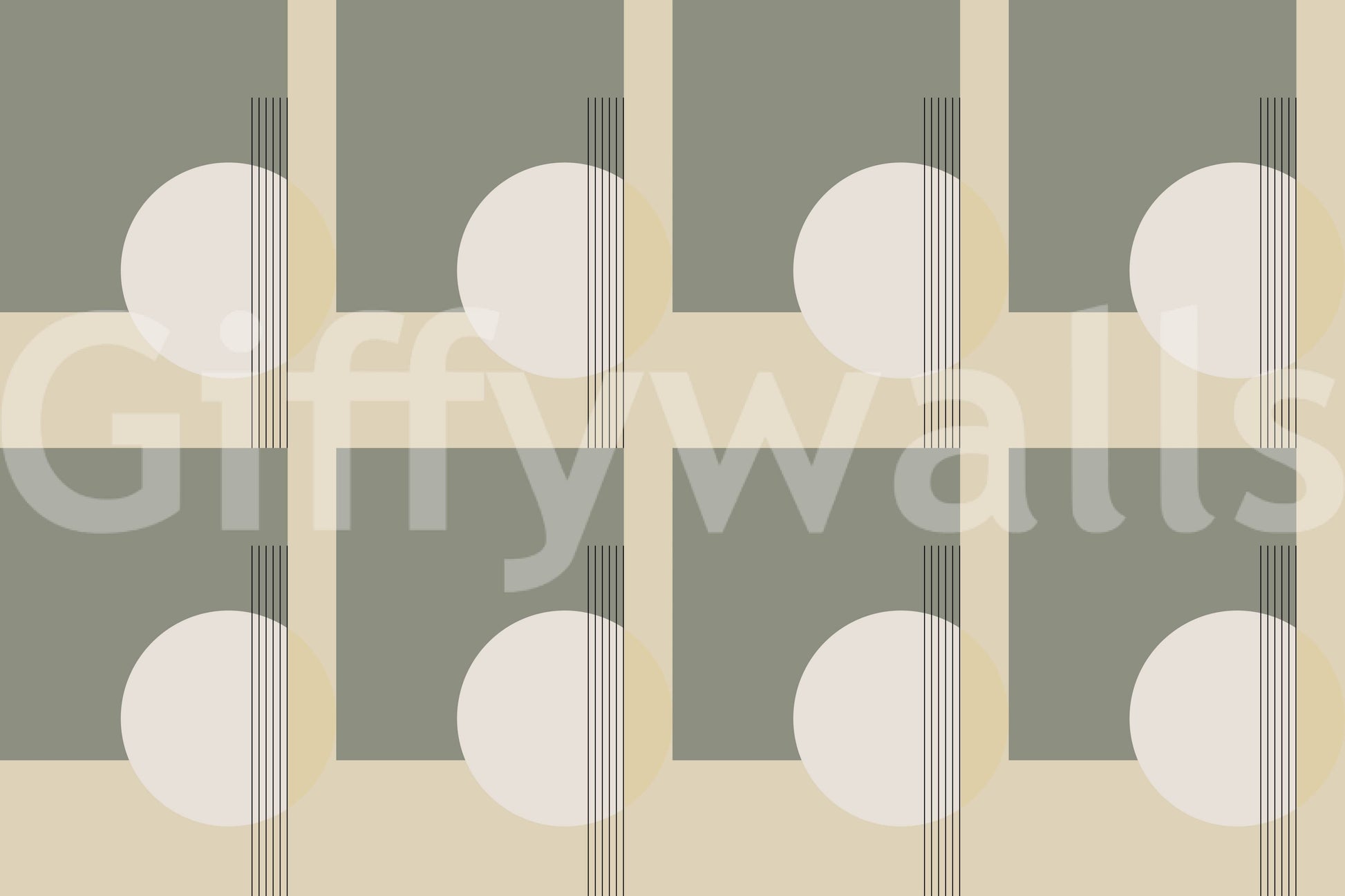 Soft Contrast - Minimalist Geometric Introduce a sense of calm structure and sophistication to your space with "Soft Contrast." This repeating wall mural design masterfully balances clean geometry with a beautifully muted color palette. The pattern features an elegant arrangement of perfectly balanced squares and gentle white half-circles, grounded by vertical thin lines. The deliberate repetition creates a rhythmic, tranquil effect that is both visually engaging and incredibly peaceful. The color scheme is intentionally subdued: featuring soft sage green, warm sandy beige, and creamy off-white. This subtle contrast ensures the design feels modern, refined, and effortlessly chic, making it the perfect backdrop for any contemporary or Scandinavian-inspired interior.