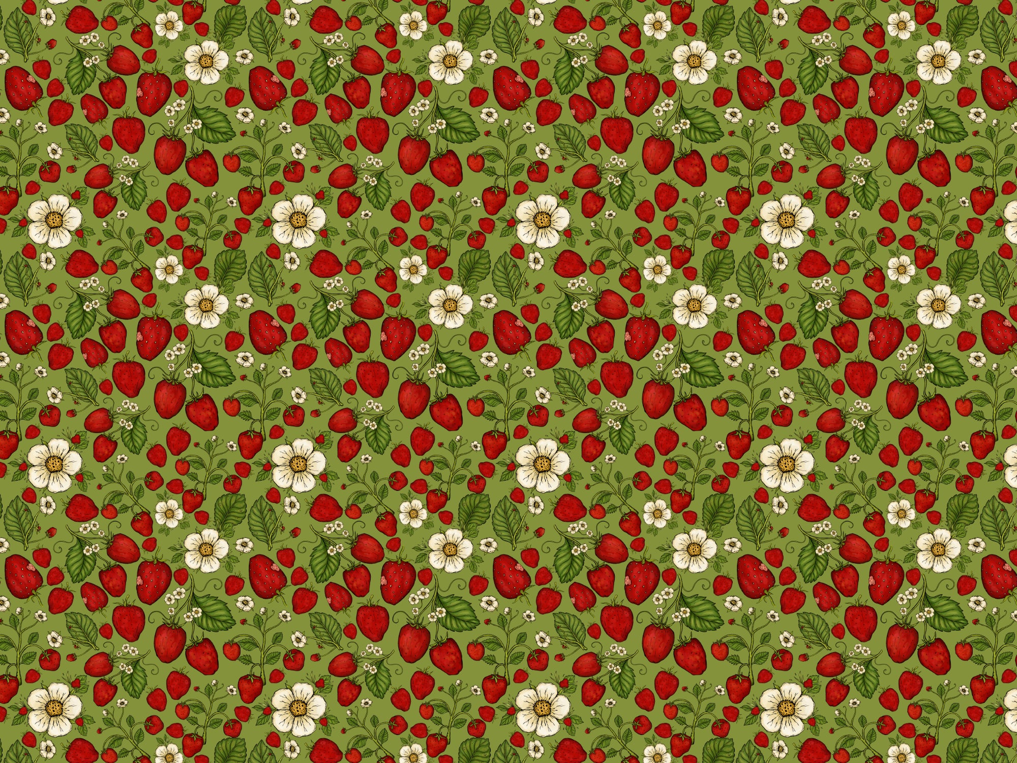 Summer-inspired strawberry wallpaper with vibrant green tones.