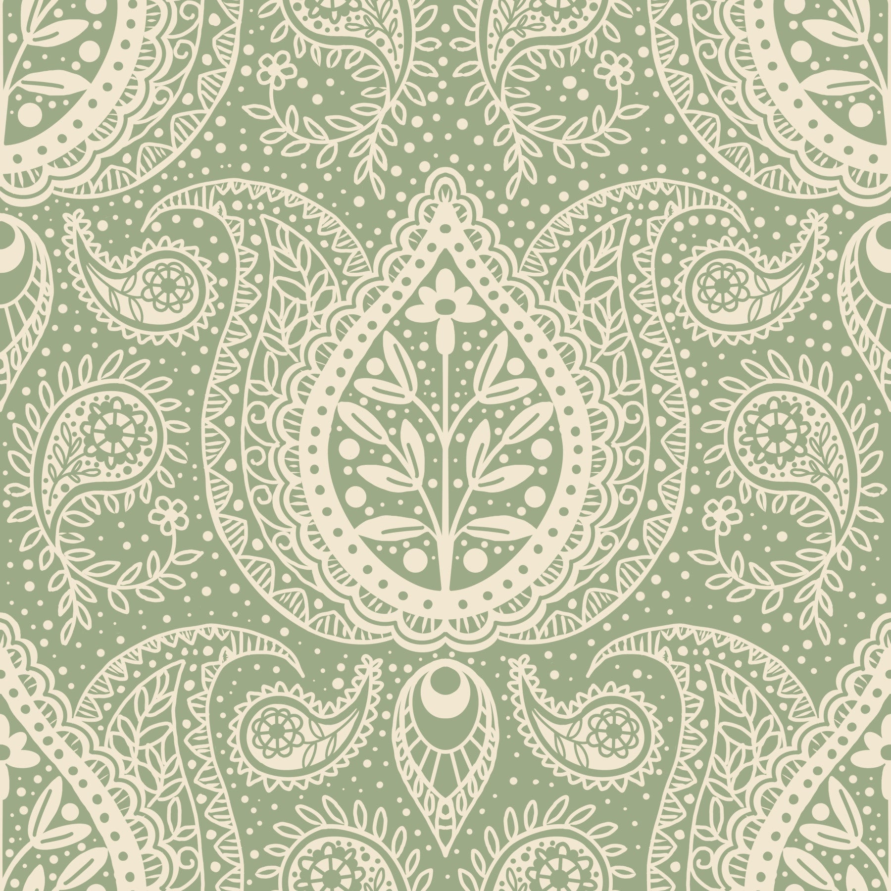 Timeless paisley wallpaper in sage color scheme