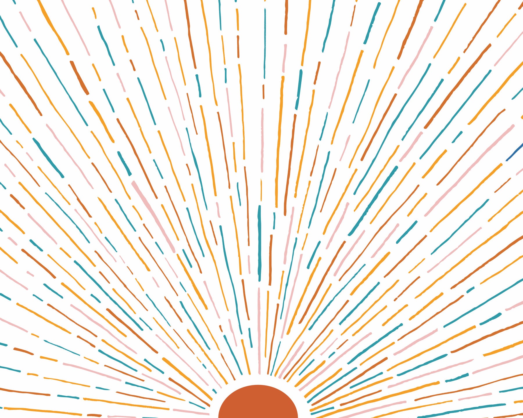 Welcome warmth into your space with this cheerful wallpaper for walls. The playful design features bursts of color radiating from a central point, creating a vibrant focal point. Earthy tones like terracotta, orange, and teal combine with soft pink to offer a lively yet balanced look. This design livens up living rooms, dining rooms, or even hallways. It complements mid-century modern or bohemian interiors, adding a touch of artistic energy to your home.