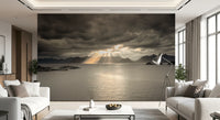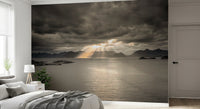 Solnedgang over norsk fjord vægmaleri
