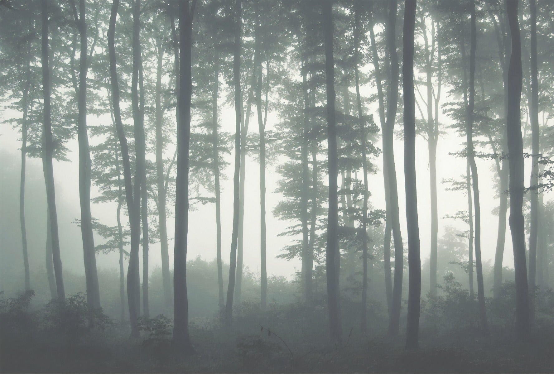 Gør dit rum til et magisk skovfristed med vores 'Tyndall Trees' høje, naturlige skovtræer æstetiske Halloween-tapet. Skyggefulde træer og tågede træscener skaber en uhyggelig, overjordisk atmosfære i dette vægmaleri, der mimer mørk skov.