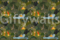 Immerse yourself in 'The Pichwai Grove,' a lush and captivating piece of wall décor that breathes life into any room. Inspired by traditional Pichwai paintings, this design depicts a serene grove filled with vibrant flora and intriguing figures. The intricate details reveal a world of ancient tales, with ethereal beings resting amidst the verdant foliage, by the gentle river flowing through the grove. The rich textures and earthy tones evoke a sense of tranquility and wonder, creating an enchanting atmosphere. Let this wall art transport you to a world of timeless beauty and mystical narratives, adding a touch of cultural richness and sophisticated charm to your living space. Embrace the artistry and storytelling woven into every detail of this evocative design.