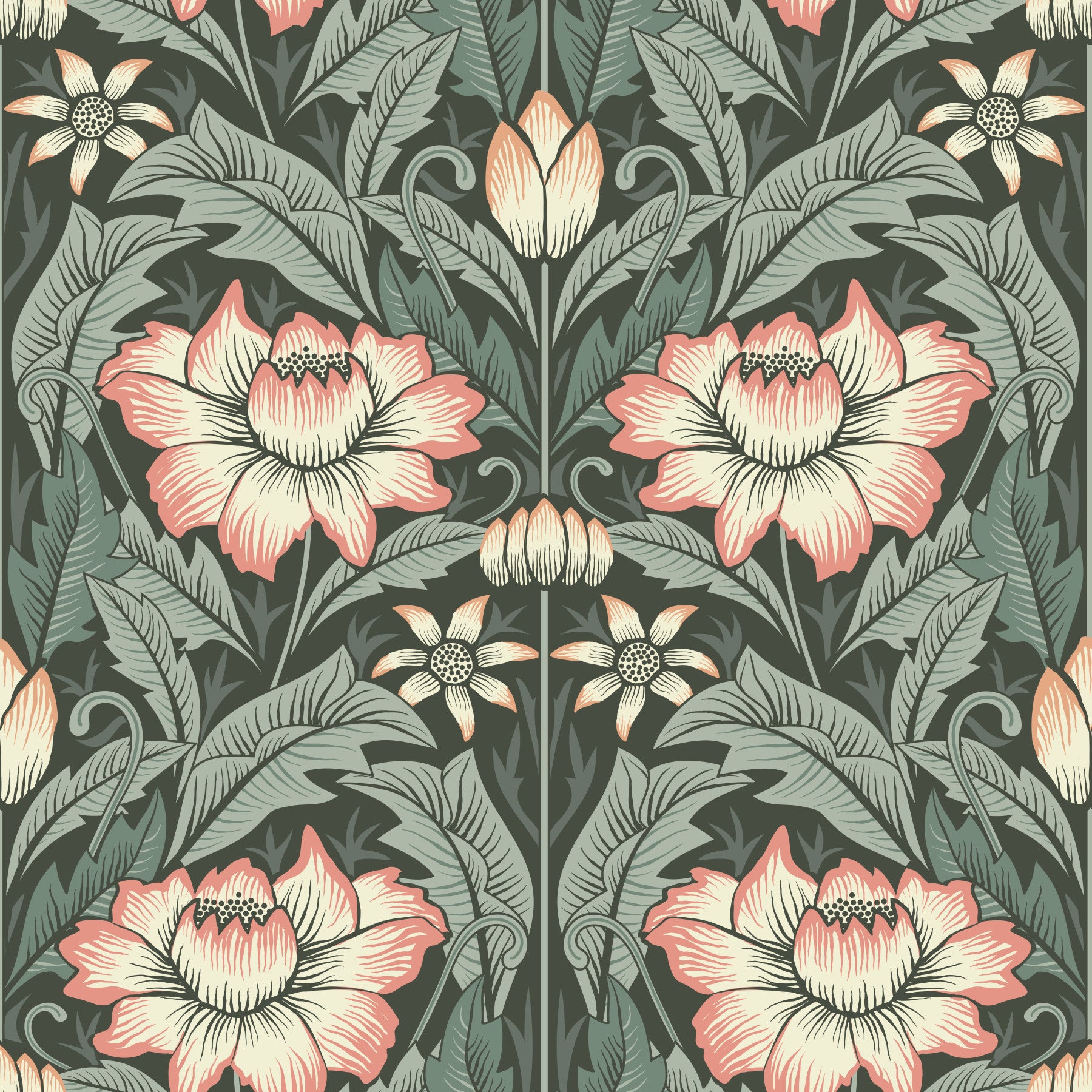 Rich forest tones and coral-tinted blooms give this design a refined, vintage charm. A perfect choice for adding depth and warmth with timeless floral elegance.