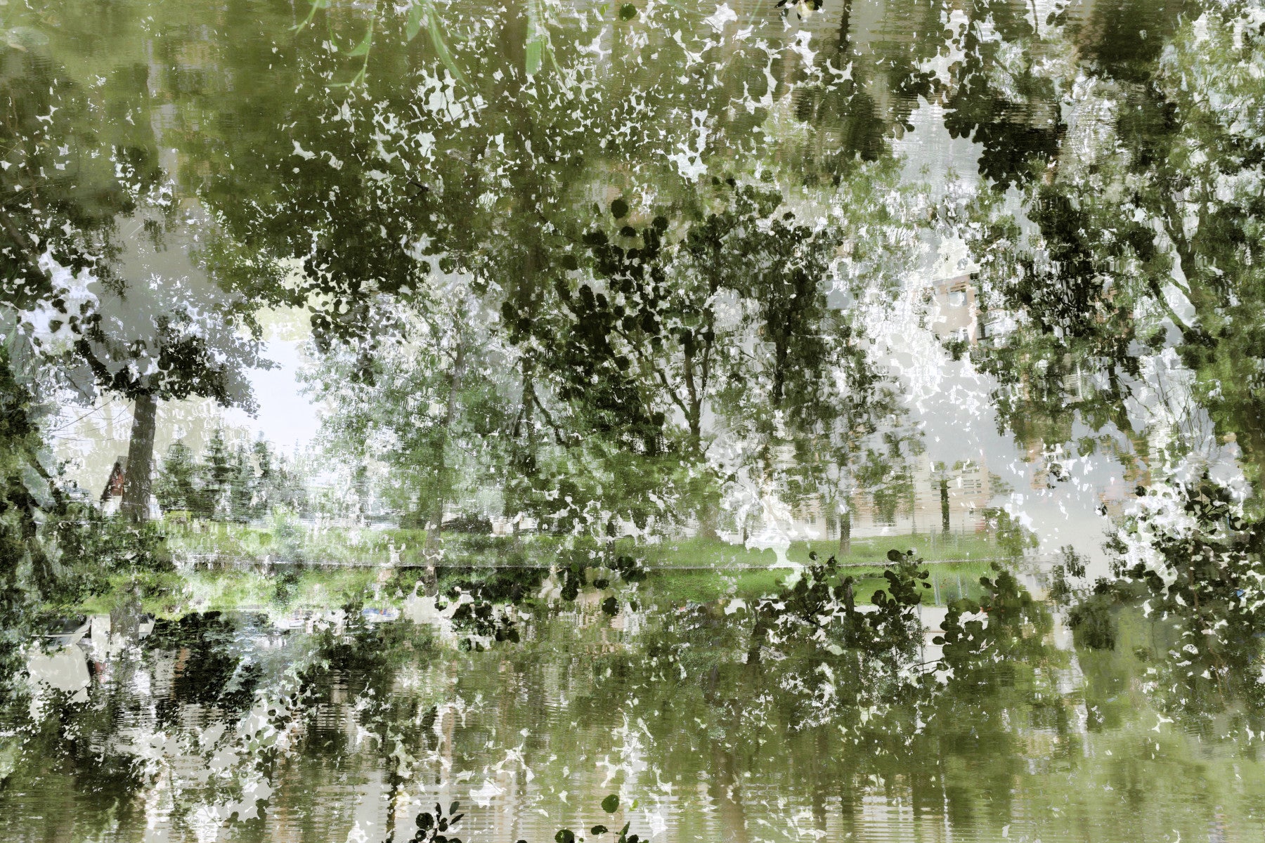 Tranquil refleksion af naturen - Abstrakt grønt kunstprint vægmaleri