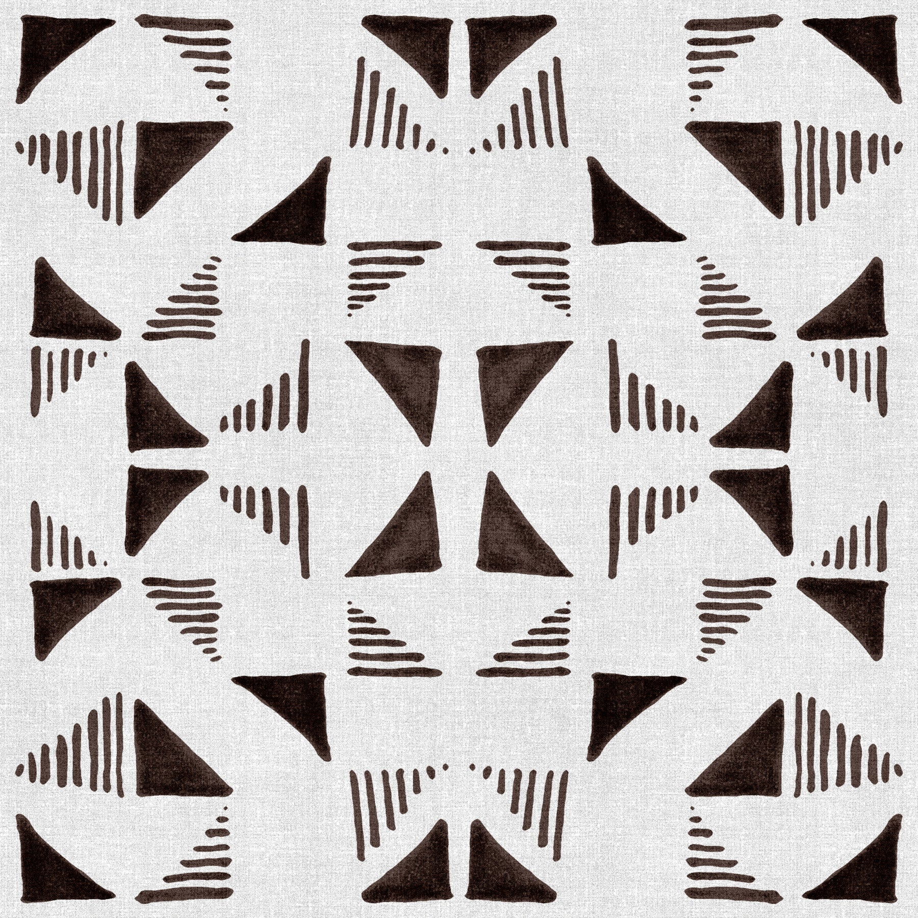 Indulge in the geometric allure of "Triangles Composition Chocolat," a wallpaper that blends minimalist design with a warm, inviting aesthetic. This pattern features a captivating arrangement of triangles in a rich, chocolate brown hue, creating a sense of grounded sophistication. Against a textured, off-white backdrop, the sharp lines and deliberate spacing of the triangles offer a modern, yet timeless feel. The accompanying linear elements adds a touch of tribal and geometric flair. Evoking the comforting sensation of dark chocolate, this wallpaper is a subtle statement piece, perfect for adding depth and character to any space. Whether you're looking to create a cozy reading nook or a chic office environment, "Triangles Composition Chocolat" brings a unique blend of artistry and warmth to your digital canvas.