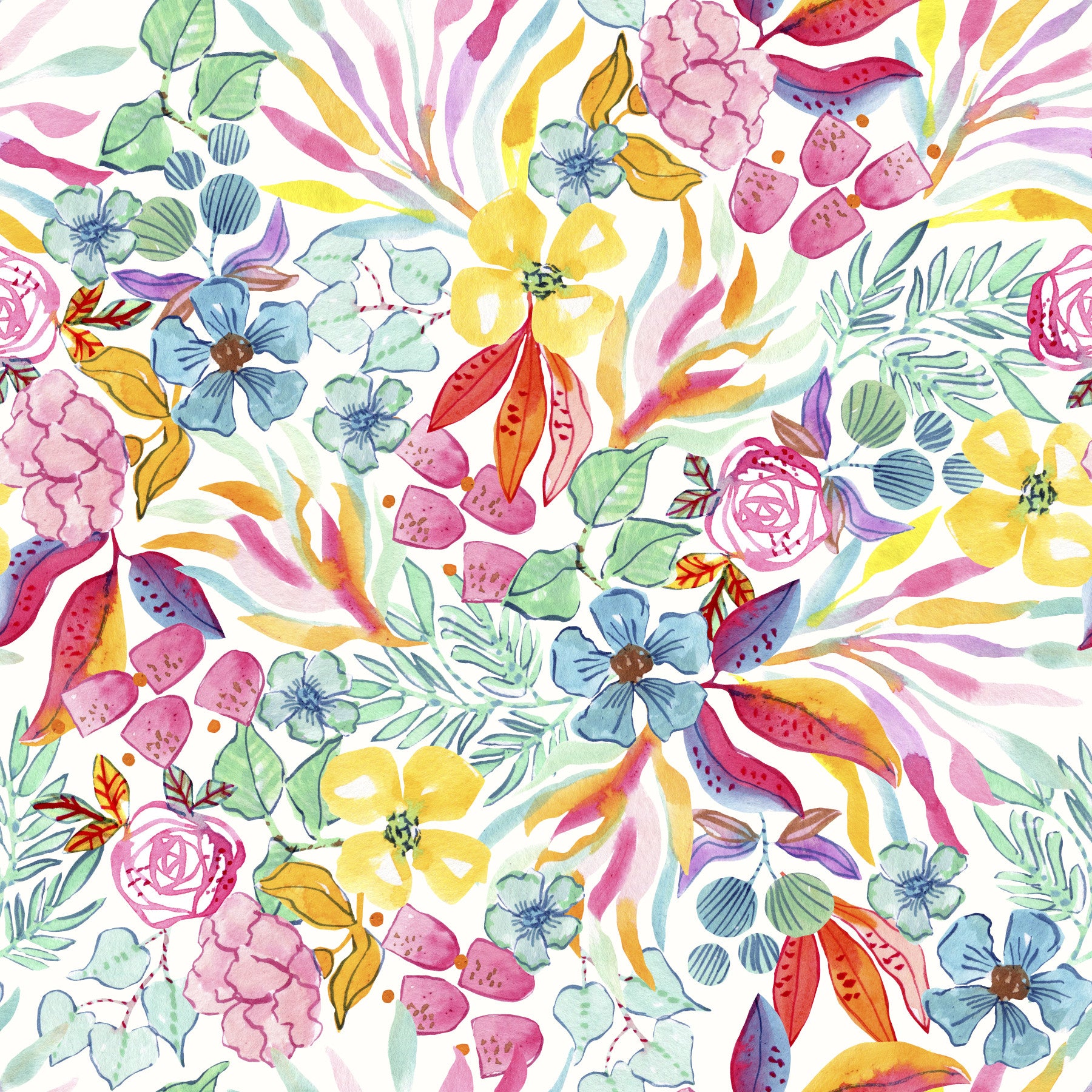 Vibrant tropical wallpaper featuring watercolor design