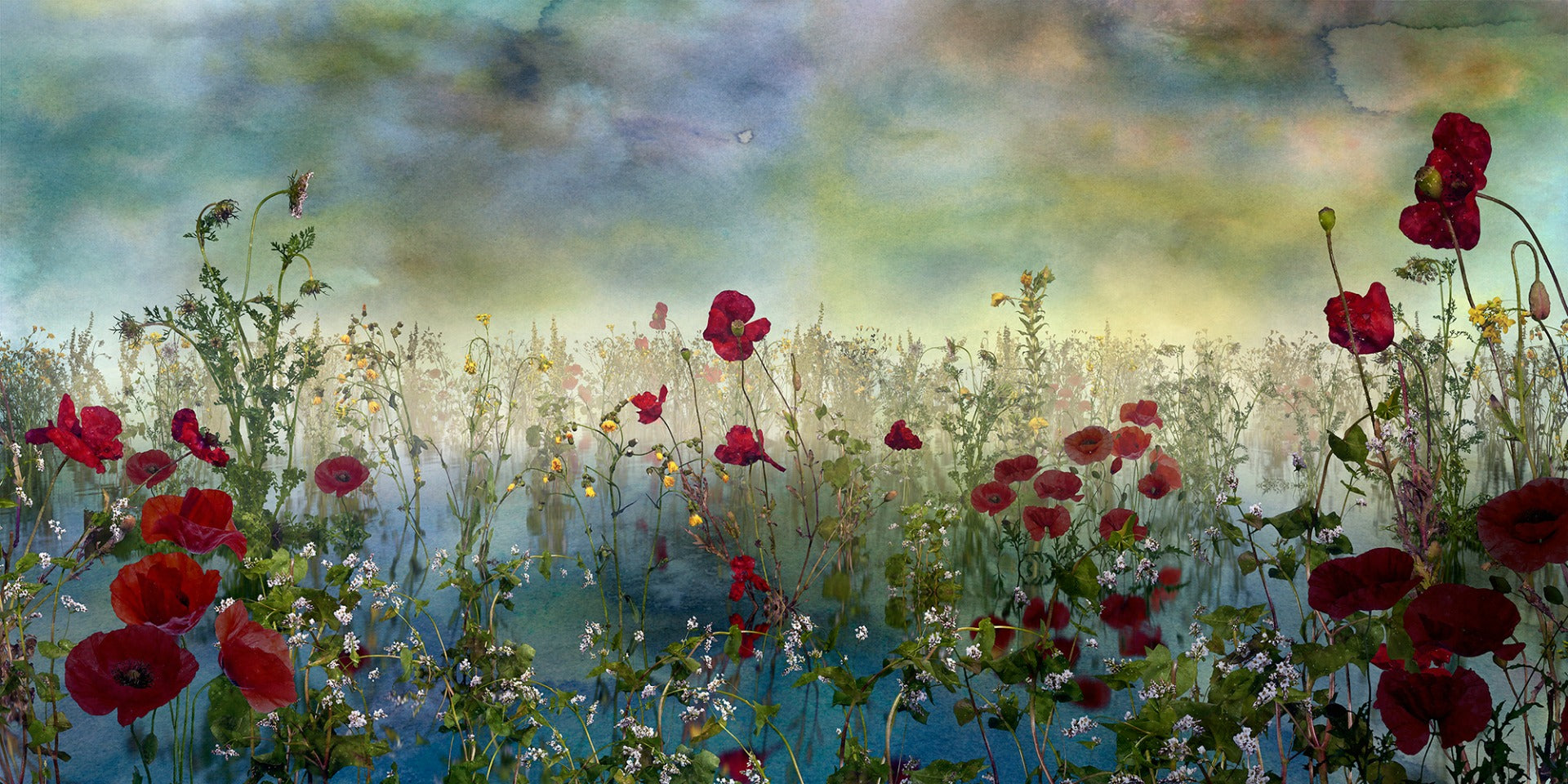 Azure Petal Panorama Poppy Blue Flower Wall Mural - Giffywalls
