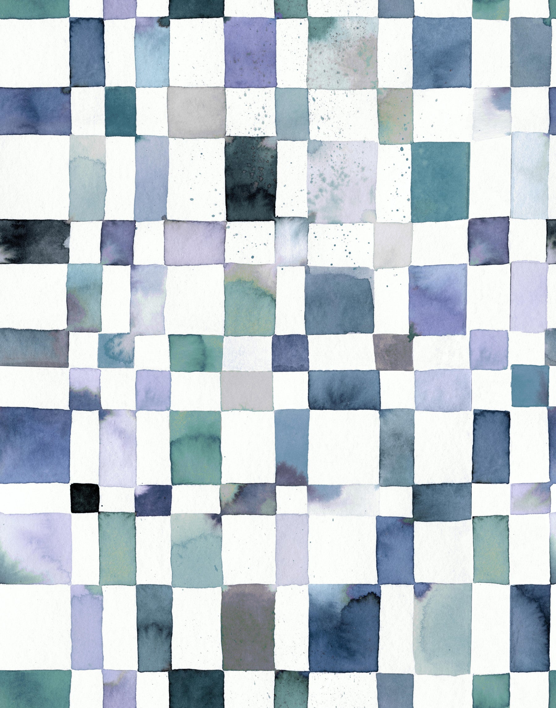 Watercolor Checker Geometric Blue Wallpaper with soft blue grid pattern.