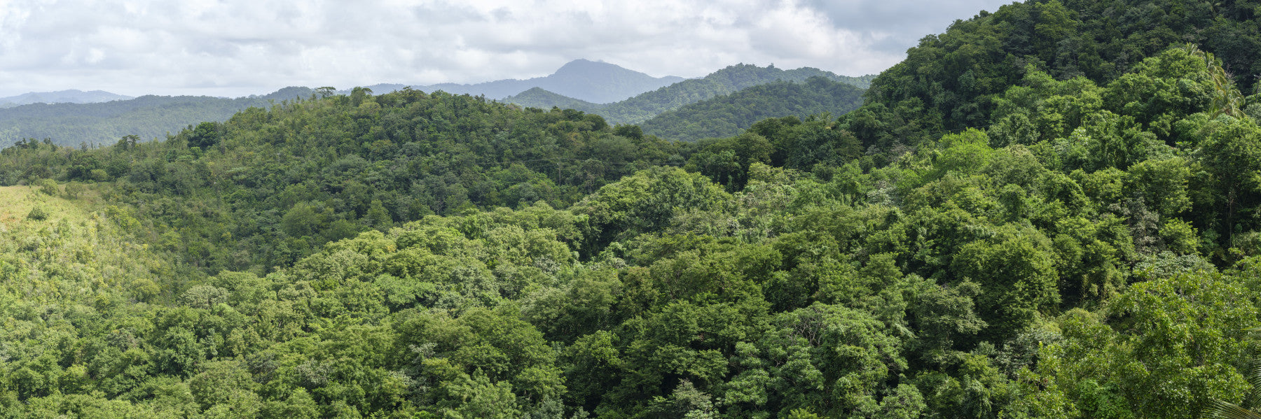 High angle view of evergreen forest, St Lucia. Transform your room with this calming landscape vista. This wallpaper for walls depicts rolling hills covered in a dense tapestry of green trees. The design offers a serene escape, ideal for creating a peaceful atmosphere in a bedroom or study. The layered effect provides depth, making smaller rooms feel more expansive. The lush greenery and subtle light add a touch of nature’s beauty to any interior.