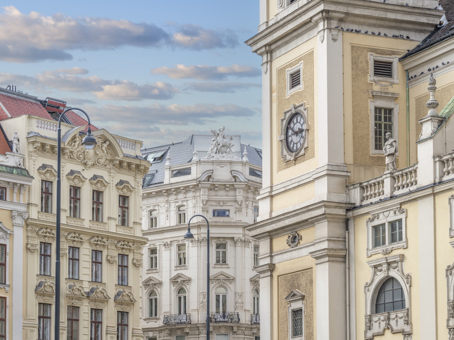 View of old facades of a street in Vienna. Austria
