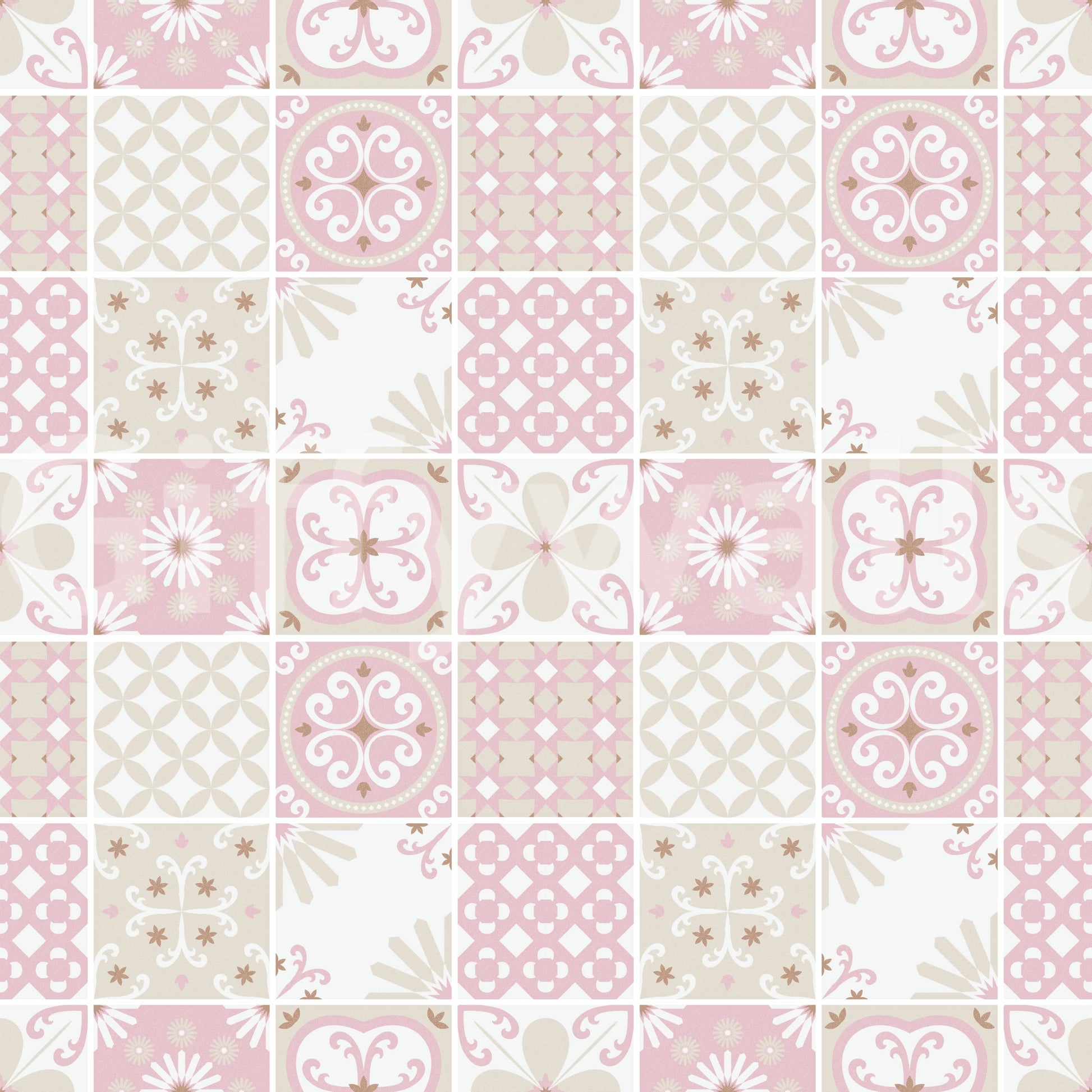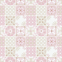 Delicate pink and cream hues highlight the intricate folk patterns in this romantic tile-inspired design. A perfect choice for soft, feminine, and nostalgic spaces.