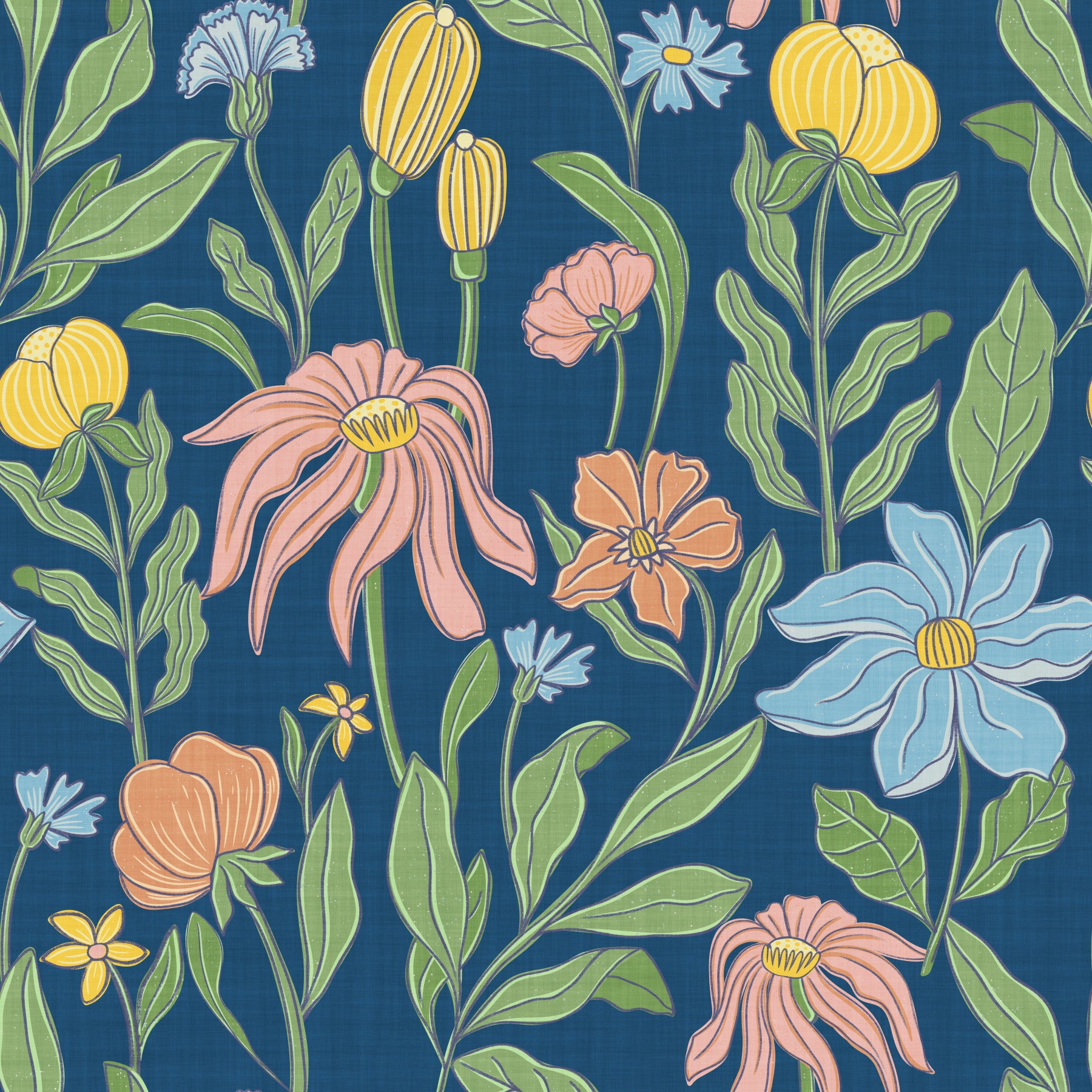 Introducer klassisk charme med dette detaljerede blomster tapet. Bløde nuancer af orange, lyserød og gul dans på et dybt blåt lærred. Designet giver en følelse af ro og natur til dit hjem. Perfekt til et soveværelse, stue eller spiseplads, dette tapet til vægge blander vintage stil med moderne sensibiliteter. Dens blide farvepalet skaber en indbydende tilbagetog, der supplerer klassisk og moderne interiør og tilføjer varme og karakter.
