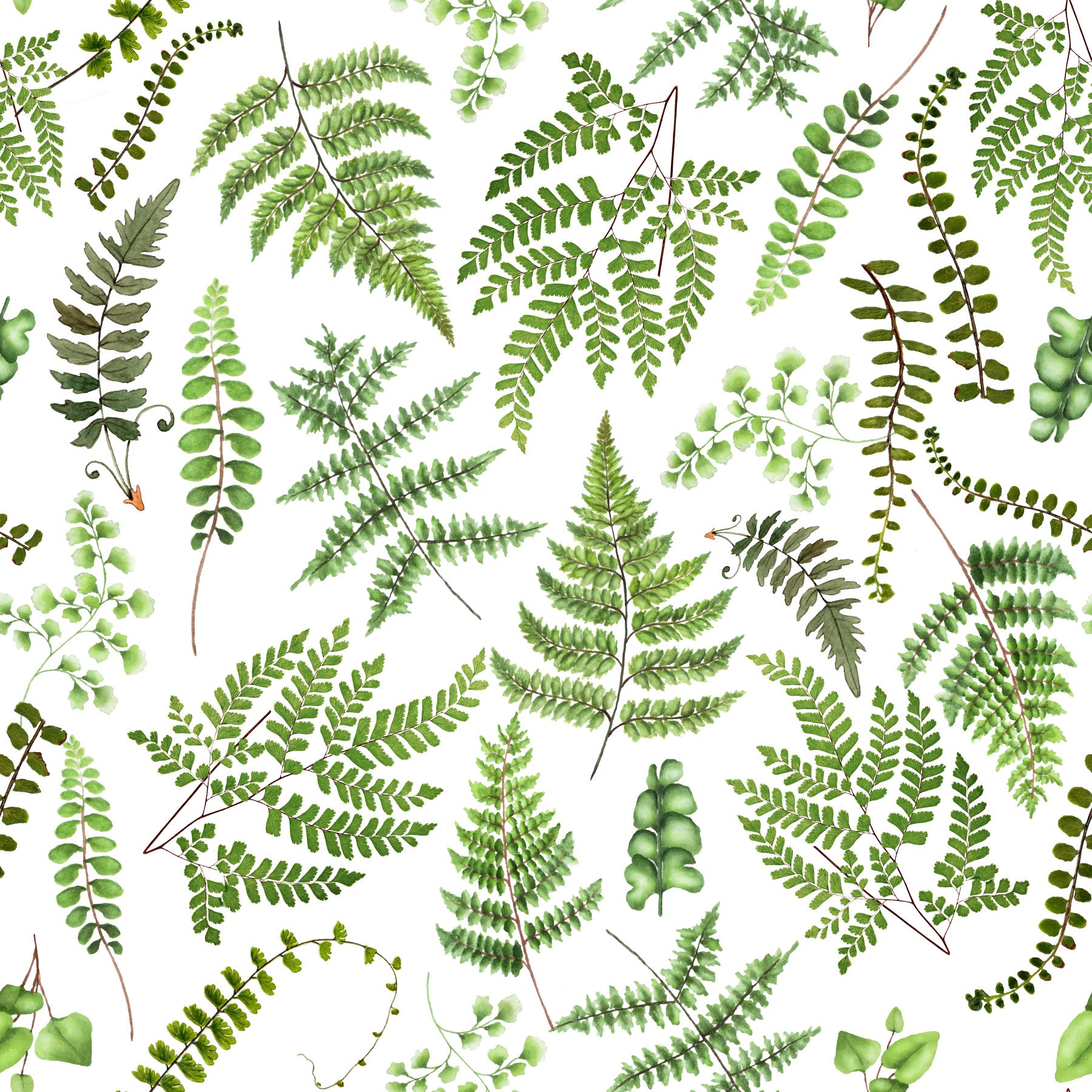 Diverse foliage design Watercolor Fern Canopy home accent