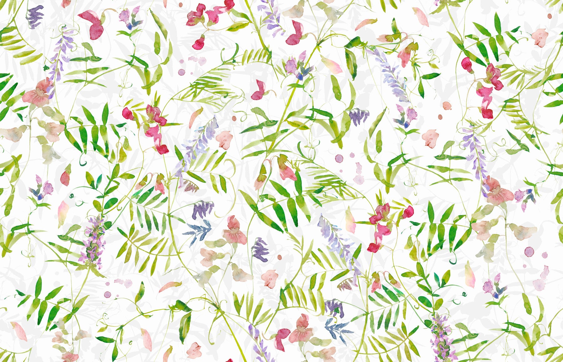 Wildflower Watercolor Wildflowers mural, sweet pea blooms spring aesthetic.