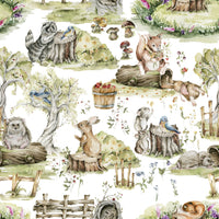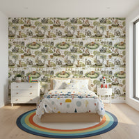 Enchant your space with this charming forest scene by Uta Naumann! This design showcases adorable woodland animals such as squirrels, rabbits, and foxes in a watercolor style. The soft, muted colors create a peaceful and inviting environment, ideal for nurseries, playrooms, or bedrooms. As wallpaper for walls, it effortlessly blends with any interior style, adding a touch of whimsical elegance. The detailed illustrations and gentle palette create a calming effect. It is a beautiful way to incorporate nature-inspired design into your home. The pattern brings warmth and cheer.