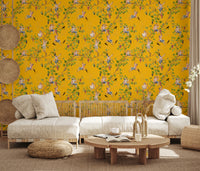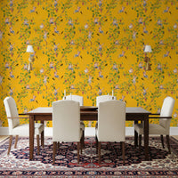 Finurlig rokoko-aber, vinfestival, aristokratisk vingård, vintage-have, gult tapet⁠