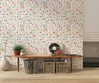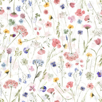 Soft vibrant Wildflower Waltz pattern aesthetic wall covering.