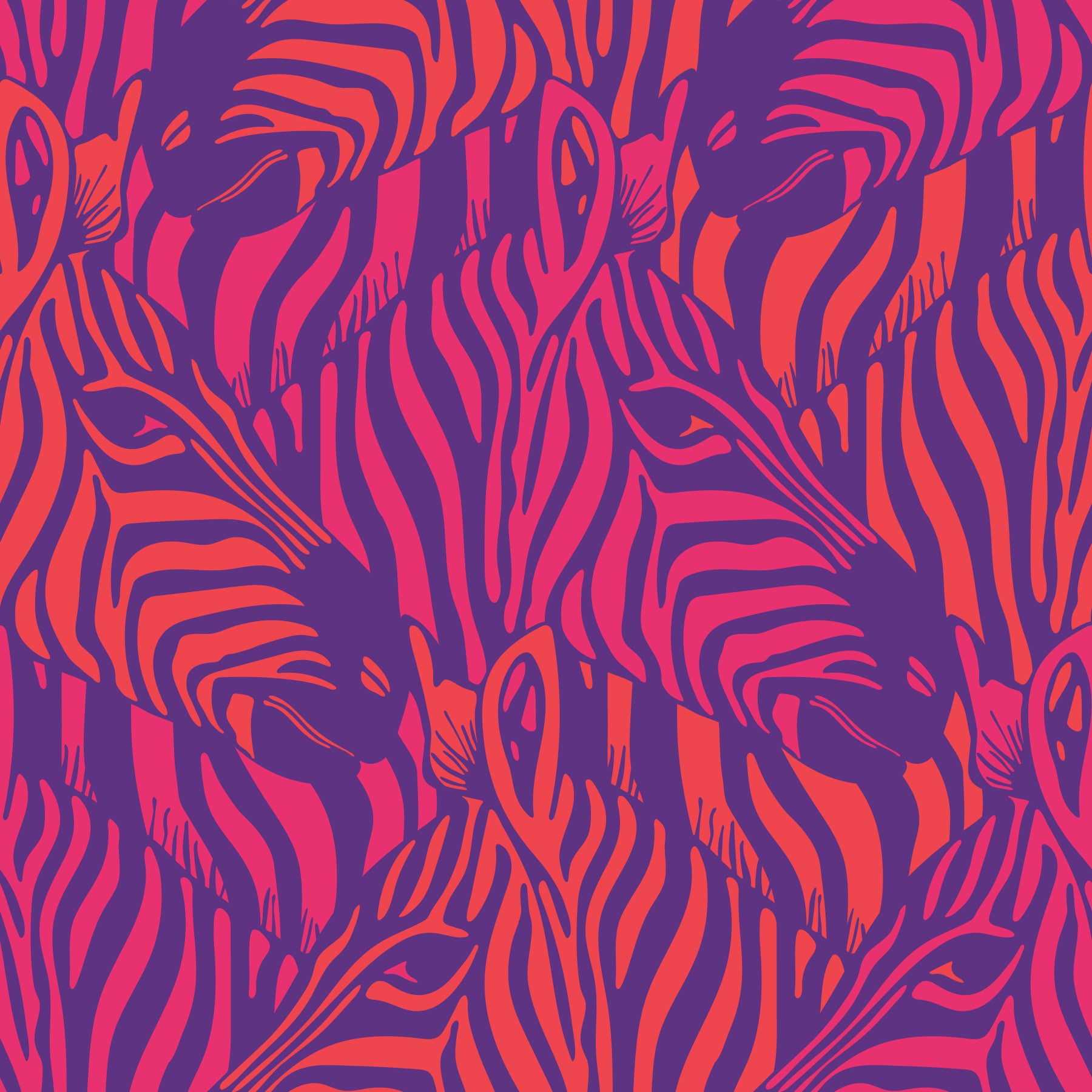 Zebra Herd Wild Animal Stripes Glam Coral Orange Fuchsia Pink Purple Wallpaper⁠