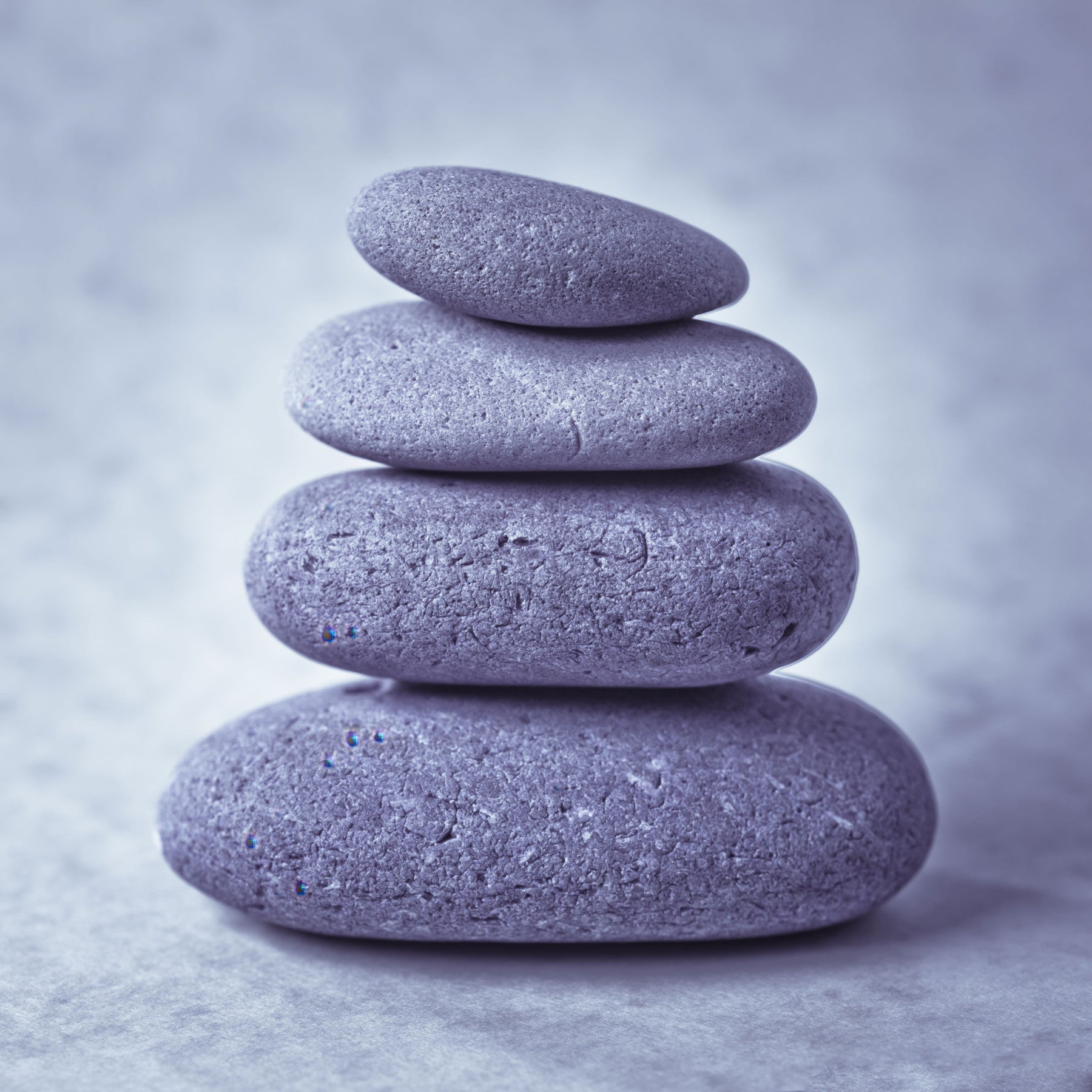 Four balanced Zen rocks wallpaper cool monochromatic tone.