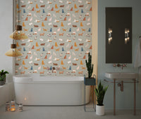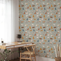 Verschönern Sie Ihre Räume mit dieser charmanten, handgezeichneten Wandtapete. Das Design zeigt eine entzückende Auswahl an Katzen in verschiedenen Posen, jede einzelne in sanften, warmen Farben und mit zarten Pinselstrichen dargestellt. Dieses verspielte Muster verleiht jedem Raum eine elegante Note. Der neutrale graue Hintergrund lässt die warmen Farbtöne der Katzen – Braun, Beige, Rosa und Blau – besonders gut zur Geltung kommen und schafft eine behagliche Atmosphäre. Ideal für Kinderzimmer, Babyzimmer oder auch ein gemütliches Wohnzimmer, passt diese Tapete sowohl zu modernem als auch zu Vintage-Einrichtungsstil. Verleihen Sie Fluren oder Spielzimmern mit diesem liebenswerten, tierisch inspirierten Design einen ganz besonderen Charme.