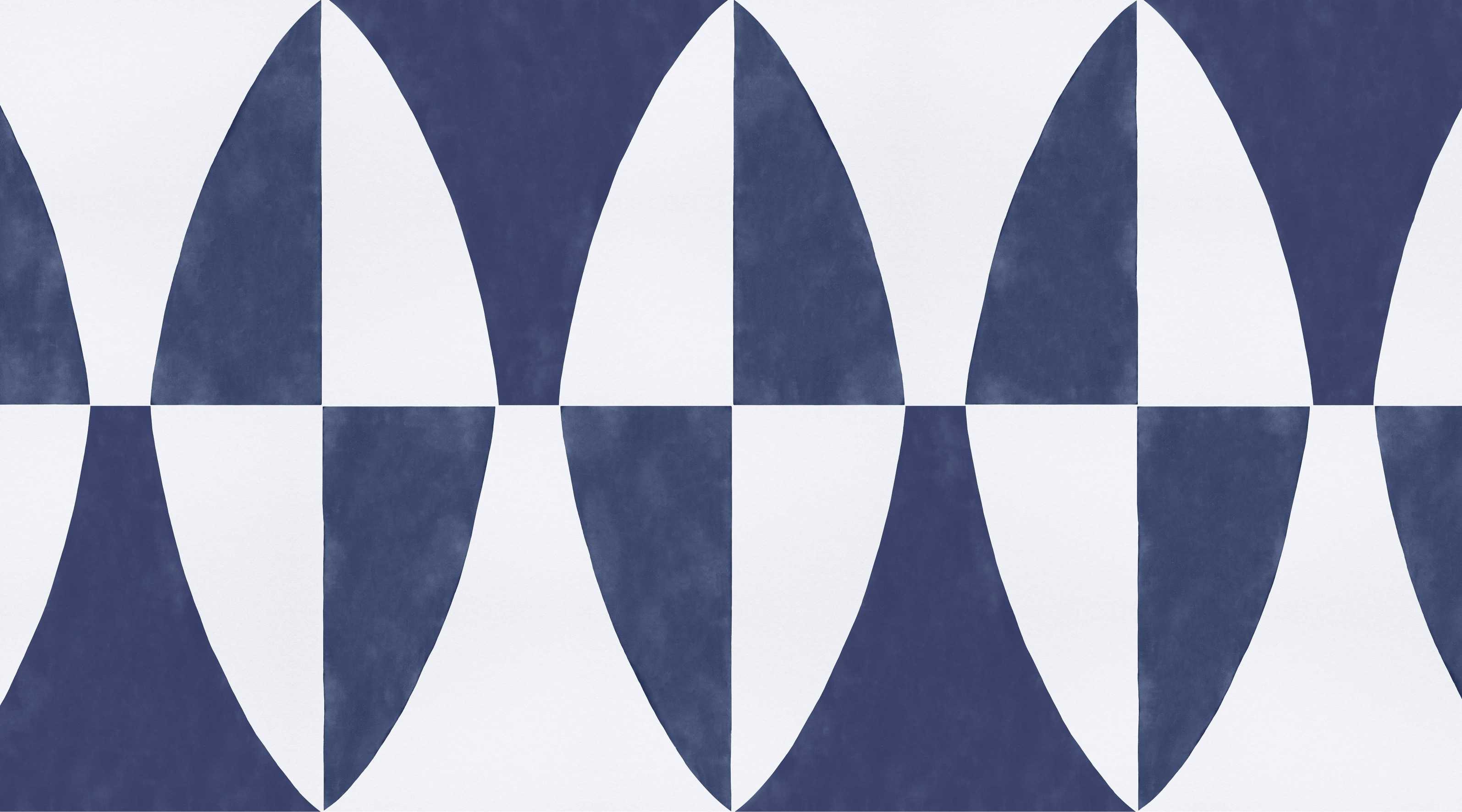 Navy blue and white abstract geometric wall covering