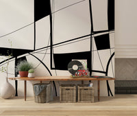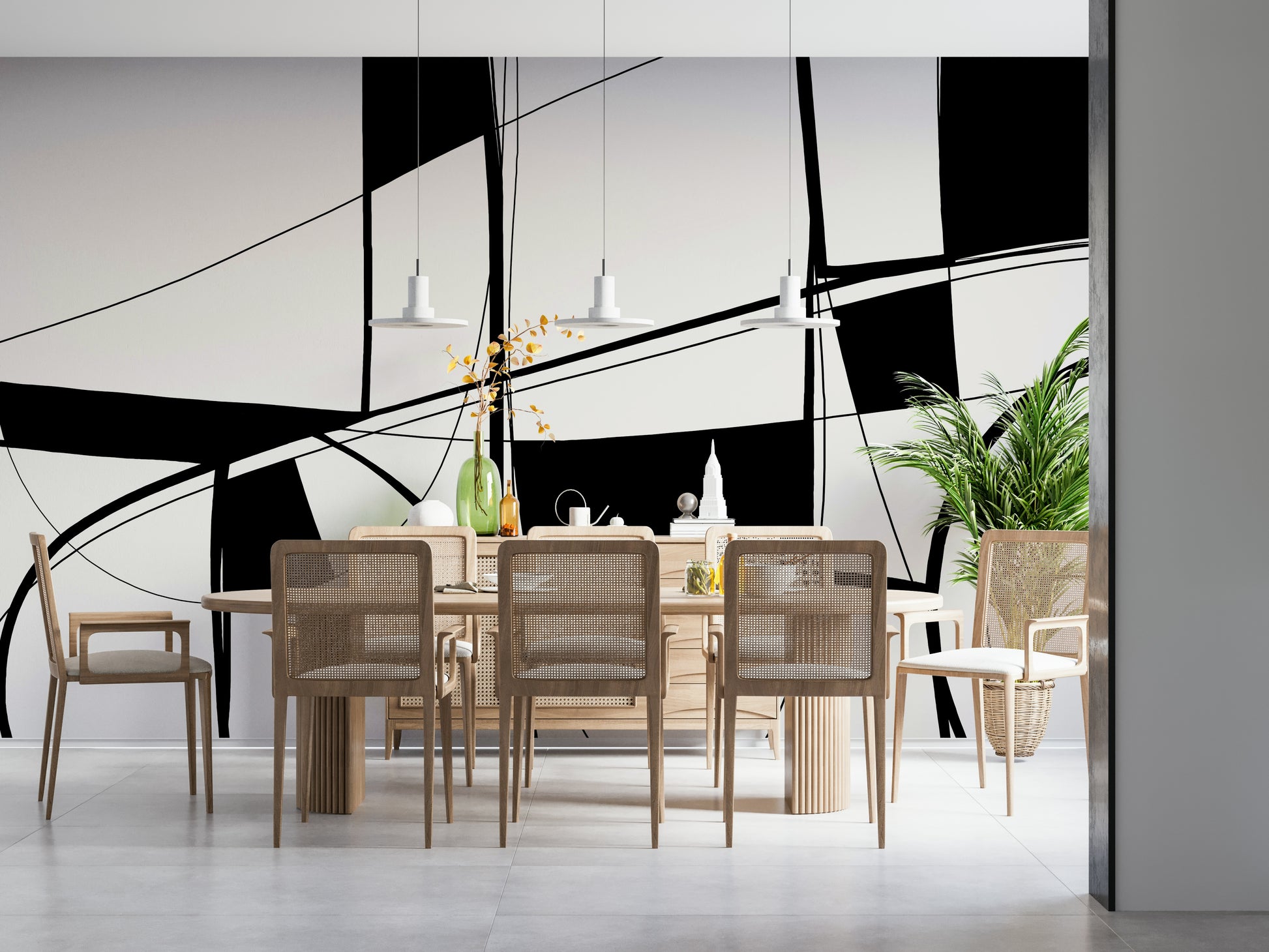 Verwandeln Sie Ihre Räume mit dieser ausdrucksstarken, grafischen Wandtapete. Das abstrakte Design besticht durch klare Linien und Formen in einer markanten Schwarz-Weiß-Palette. Dieses moderne Muster setzt in jedem Raum sofort einen Akzent. Es verleiht ihm einen eleganten, minimalistischen Stil, der sowohl zu zeitgenössischen als auch zu industriellen Interieurs passt. Ob Wohnzimmer, Schlafzimmer oder Büro – diese Tapete schafft eine wirkungsvolle Kulisse. Ihre kontrastierenden Farben und die schlichte Geometrie verstärken das natürliche Licht und sorgen für optische Reize, ohne den Raum zu erdrücken. Dieses Design bietet Ihnen eine vielseitige Möglichkeit, Ihre Einrichtung zu verschönern.