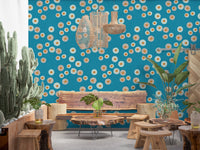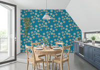 Gemütliche skandinavische Folk-Punkt-Blumen-Nordisch-Türkis - Craft Circle Tapete⁠